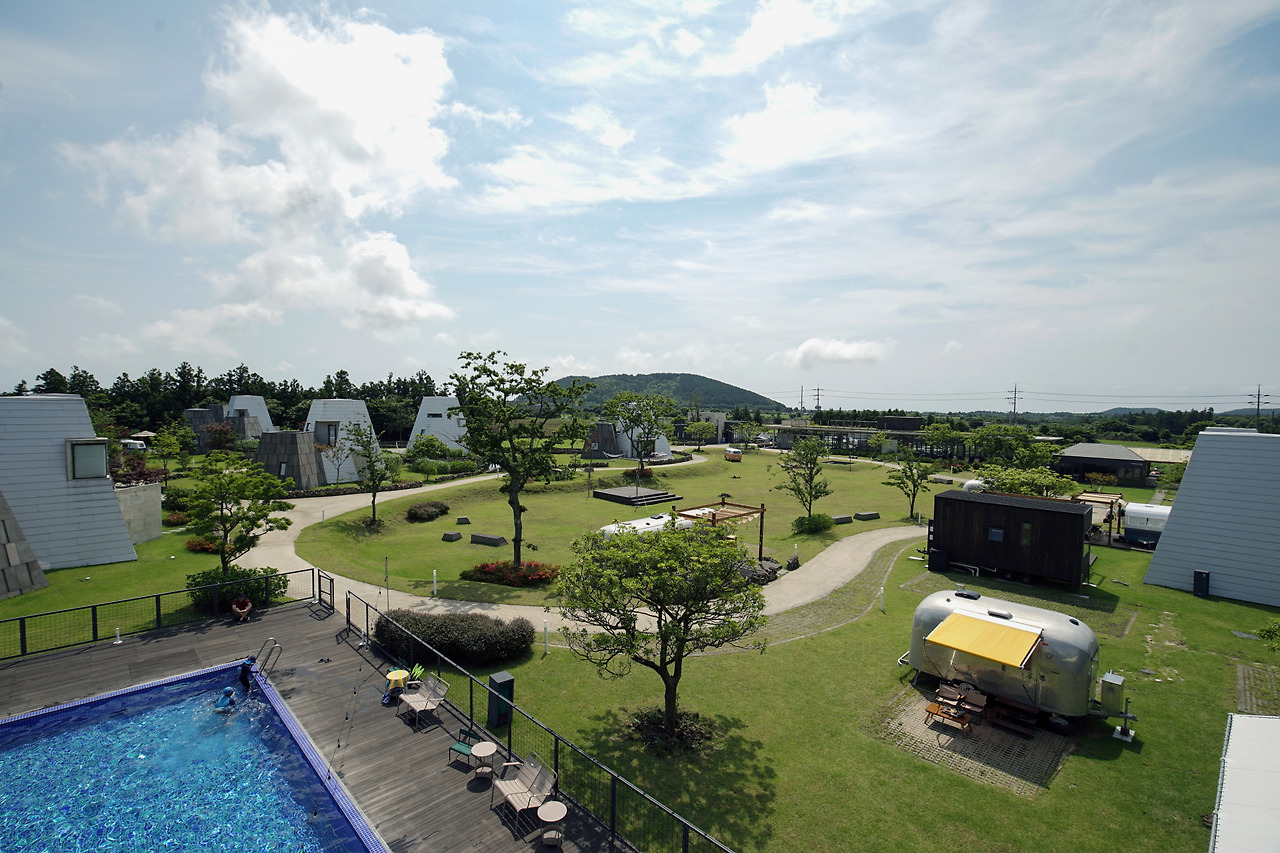 ‘폴리파크’에는 어린이 친구들이 좋아할 모래 놀이터와 도심에선 듣기 어려운 개구리 합창단의 목소리를 들을 수 있는 연못도 있다. 특히 어라운드폴리의 수영장은 제주 오름이 보이는 풍경과 시원한 바람 속에서 수영을 즐기는 최고의 힐링 포인트이다.