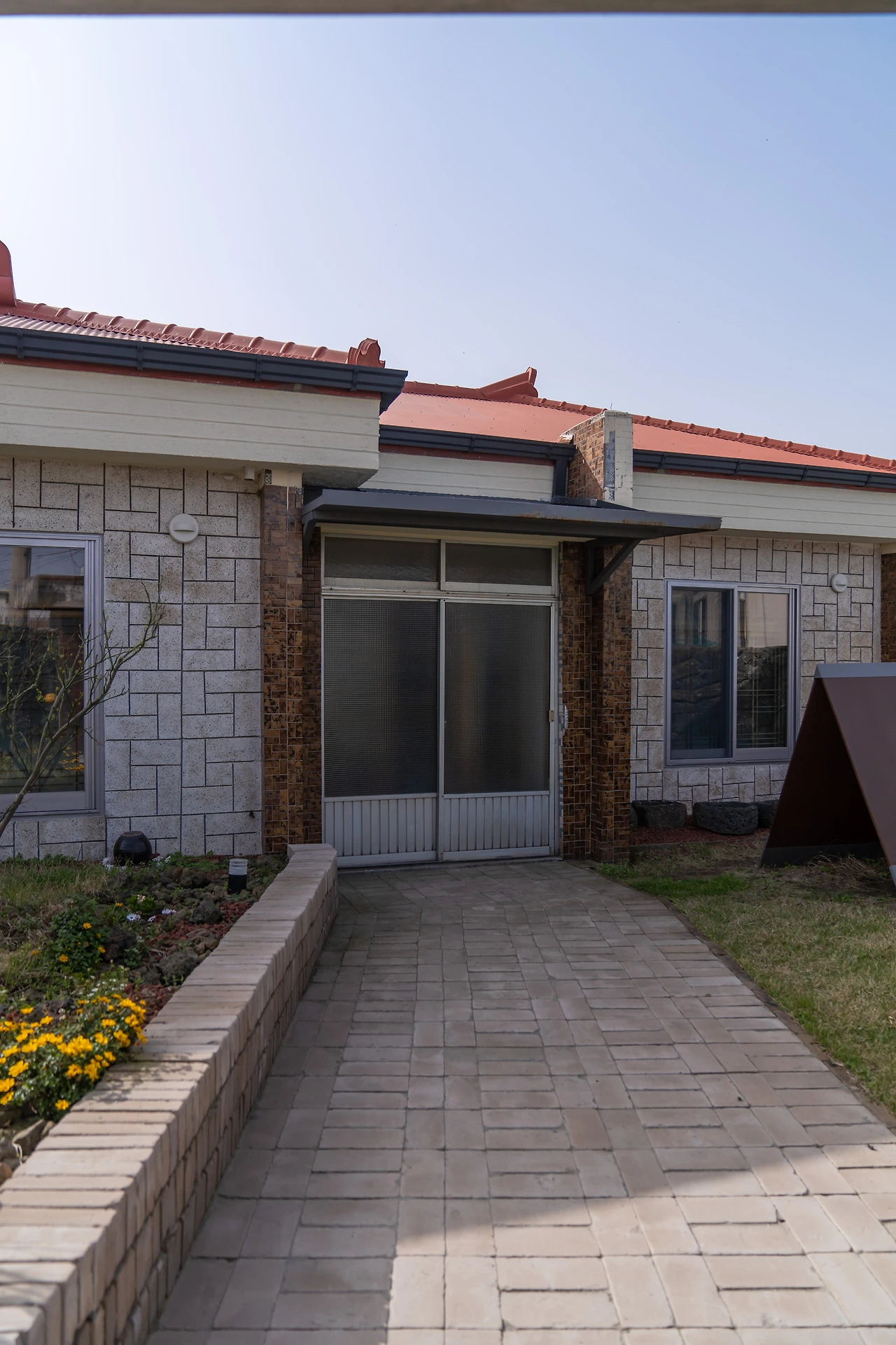 바다와 올레길이 만나는 마을 어귀. 아날로그우리집은 주택가 좁은 골목 안에 위치하고 있다. 마을 공터에 주차 후 더 조용한 골목 안으로 들어간다. 대문 옆 입구에 작은 글씨로 쓰여있는 아날로그 우리집 폰트마저도 아날로그스럽다. 대문을 들어서면 마당에 작은 한라봉 나무가 심어져있다. 크지 않은 현관, 낡은 미닫이문이 아늑하고 정겨운 분위기를 만들어내며 기대감을 높여주었다.