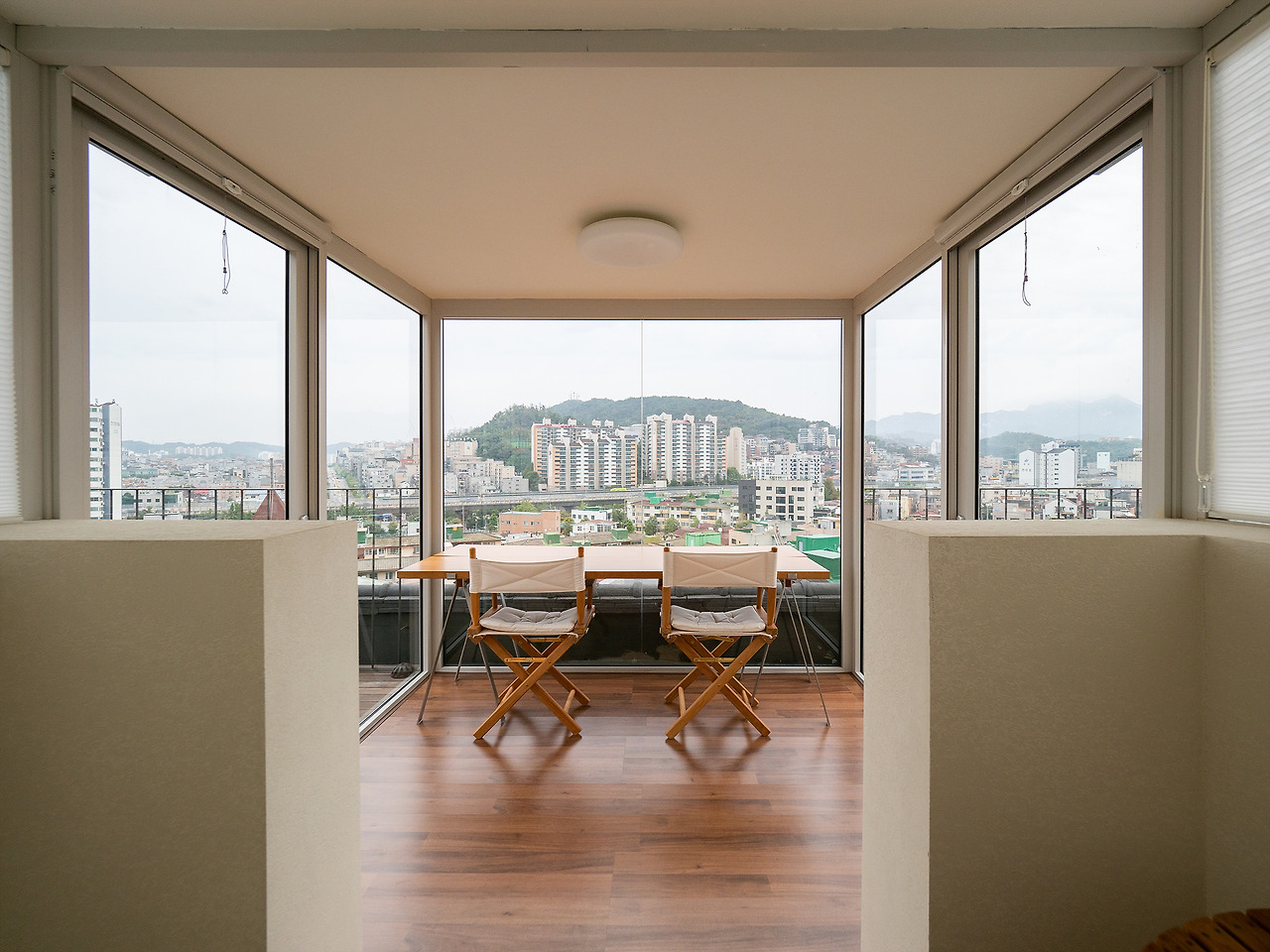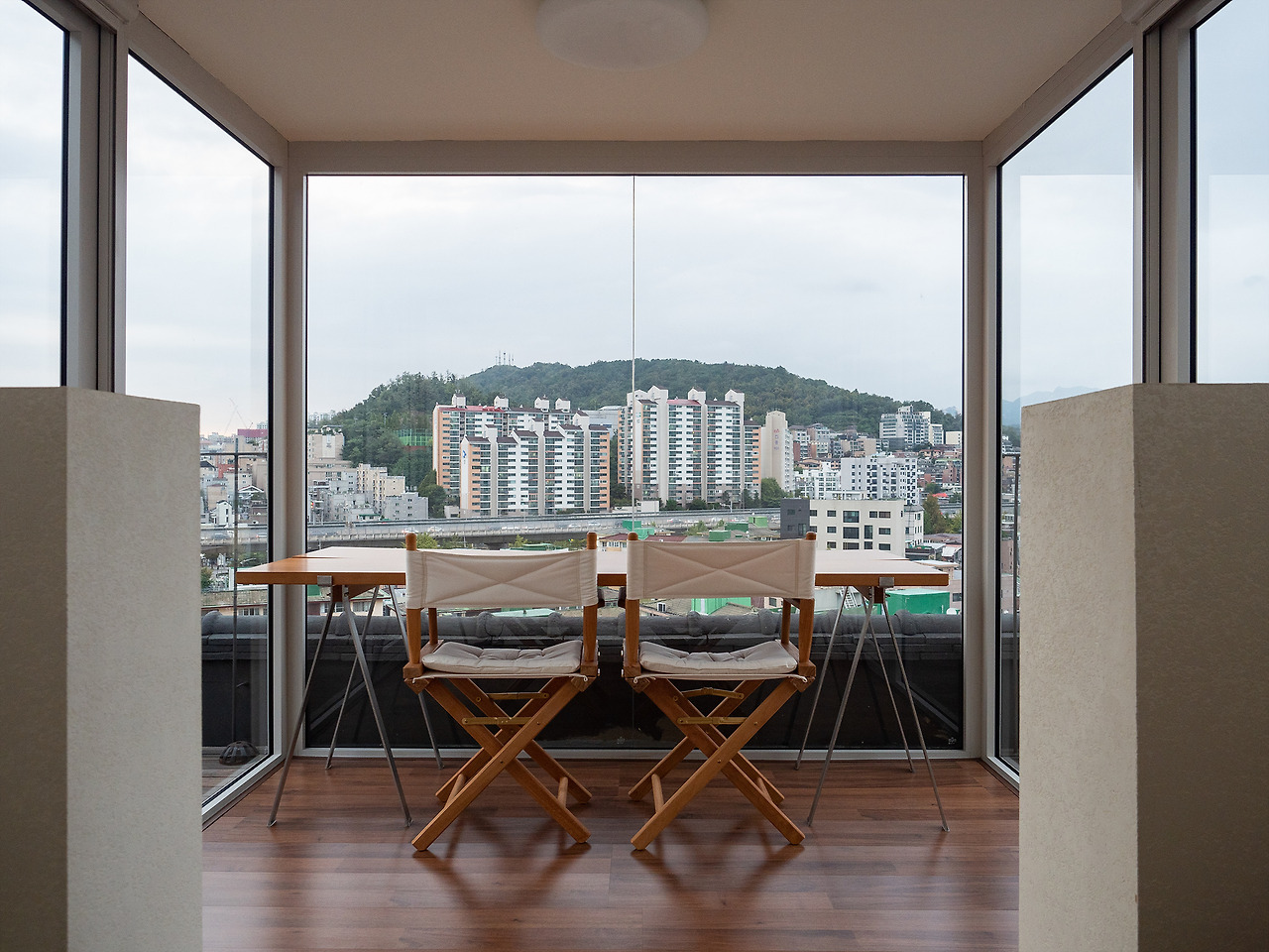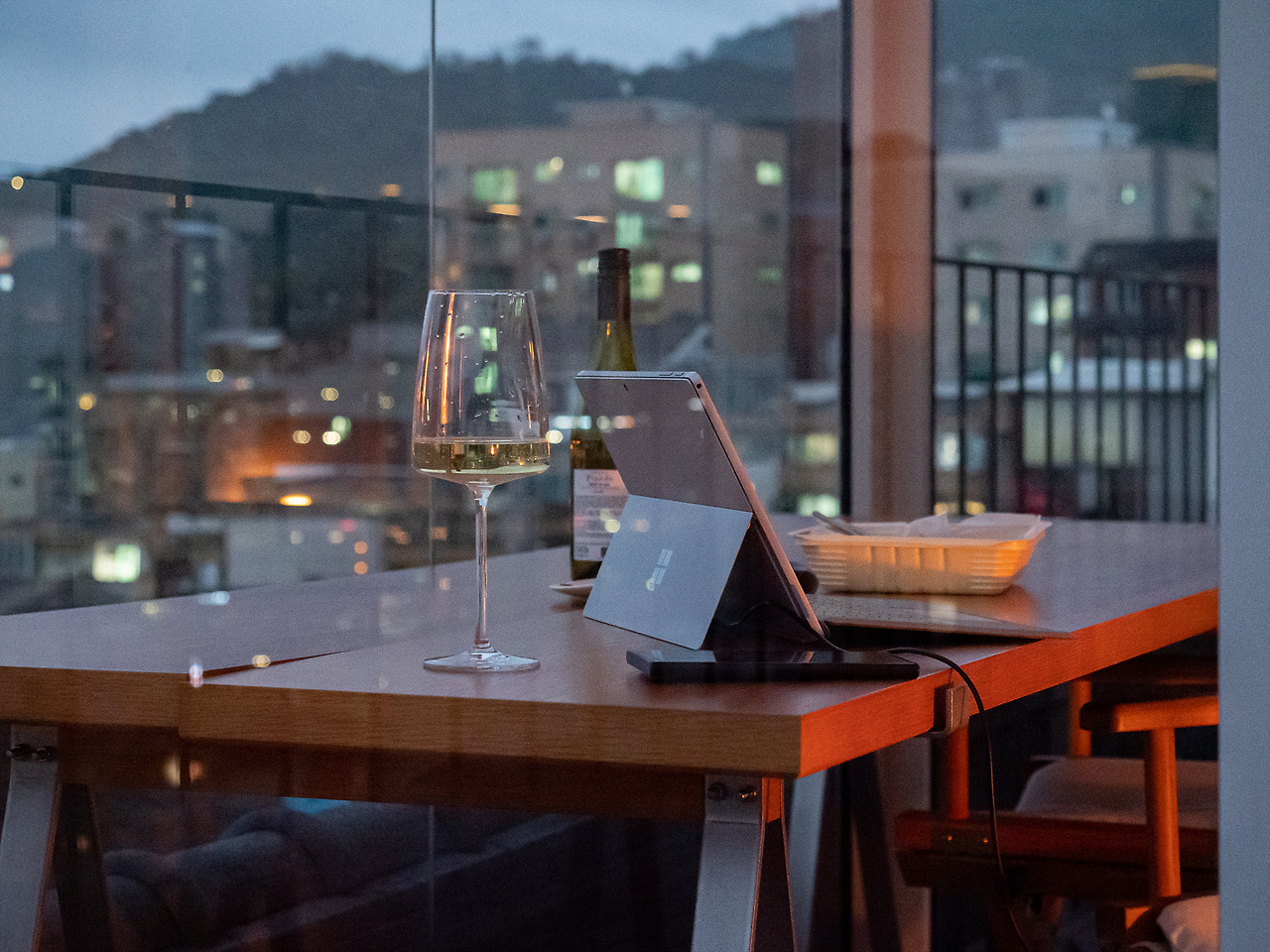 와인잔을 들고 다시 테라스로 올라왔다. 의자에 반쯤 누워 앉아 와인을 마시면서 창밖을 바라볼 생각을 하니 벌써부터 설렌다. 해가 조금 떨어졌는데 덕분에 좀 더 예쁜 서울의 모습이 기다리고 있었다.