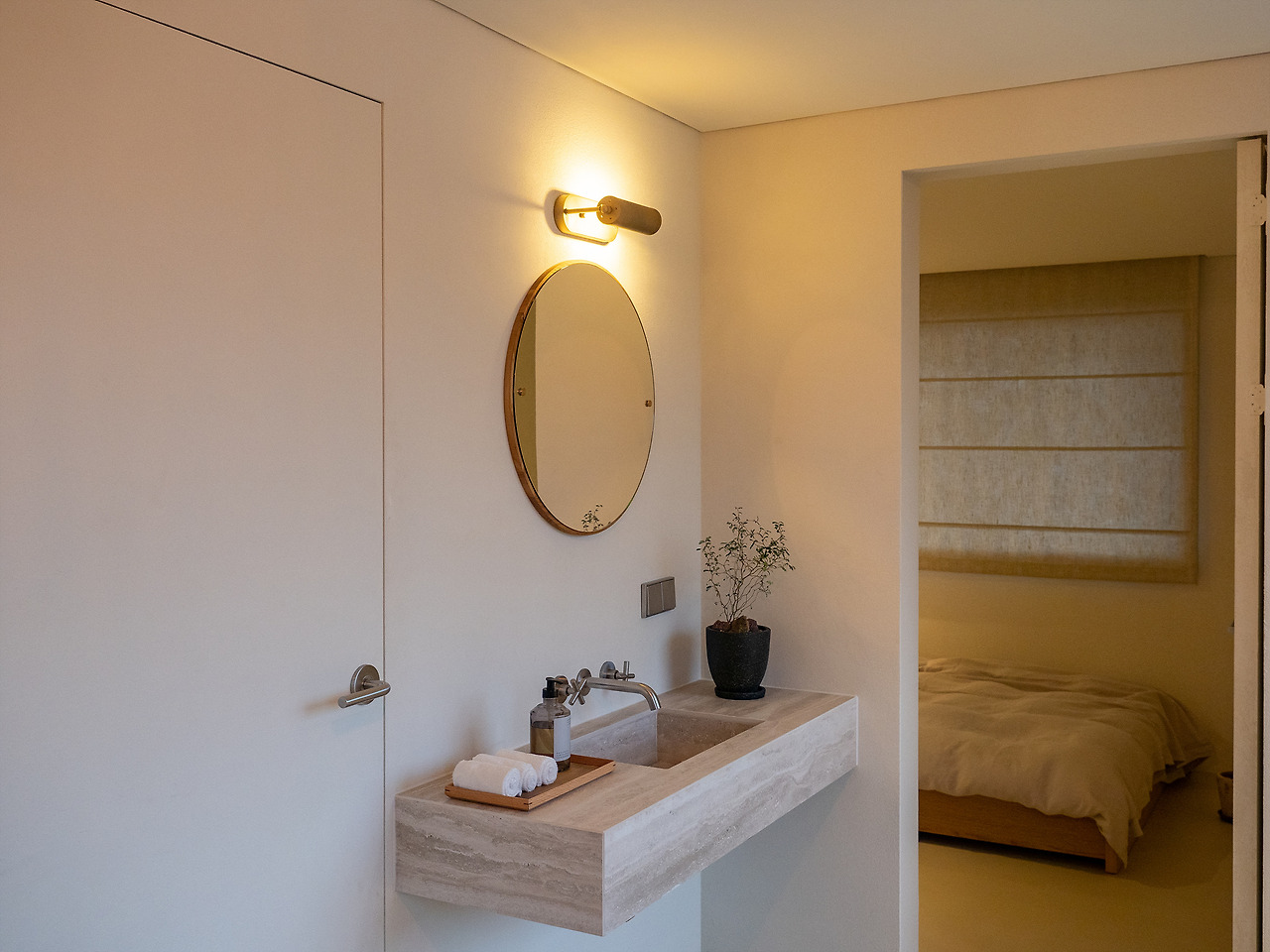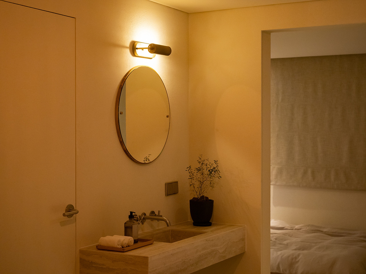 건식 세면대가 독특했다. 동그란 거울과 포인트 조명, 그리고 정면에 위치한 큰 창에서 들어오는 자연광의 조합. 노모어의 채광을 즐기면서 양치질도 하고 손도 닦고 하라는 의미겠지. 화장실은 조금 작게 느껴지지만 불편할 정도는 아니다. 어메니티는 프라마의 우디한 향으로 채워두었다.