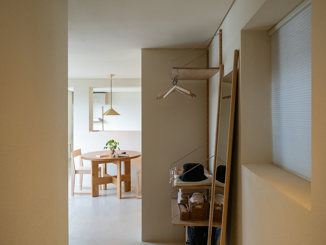 반으로 접히는 라운드 테이블이 있었는데, 활용성이 아주 좋았다. 창가 앞에 앉아 책을 보거나 커피를 마시기에도 좋고, 테이블을 완전히 펴서 다이닝 테이블로 쓰기에도 적당한 크기였다. 여러모로 공간에 어울리는 가구를 배치하기 위한 고민이 느껴지는 부분이다.