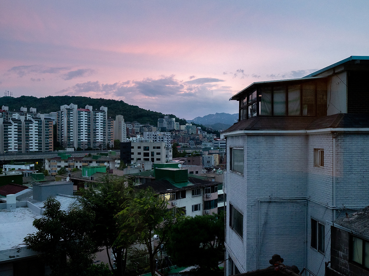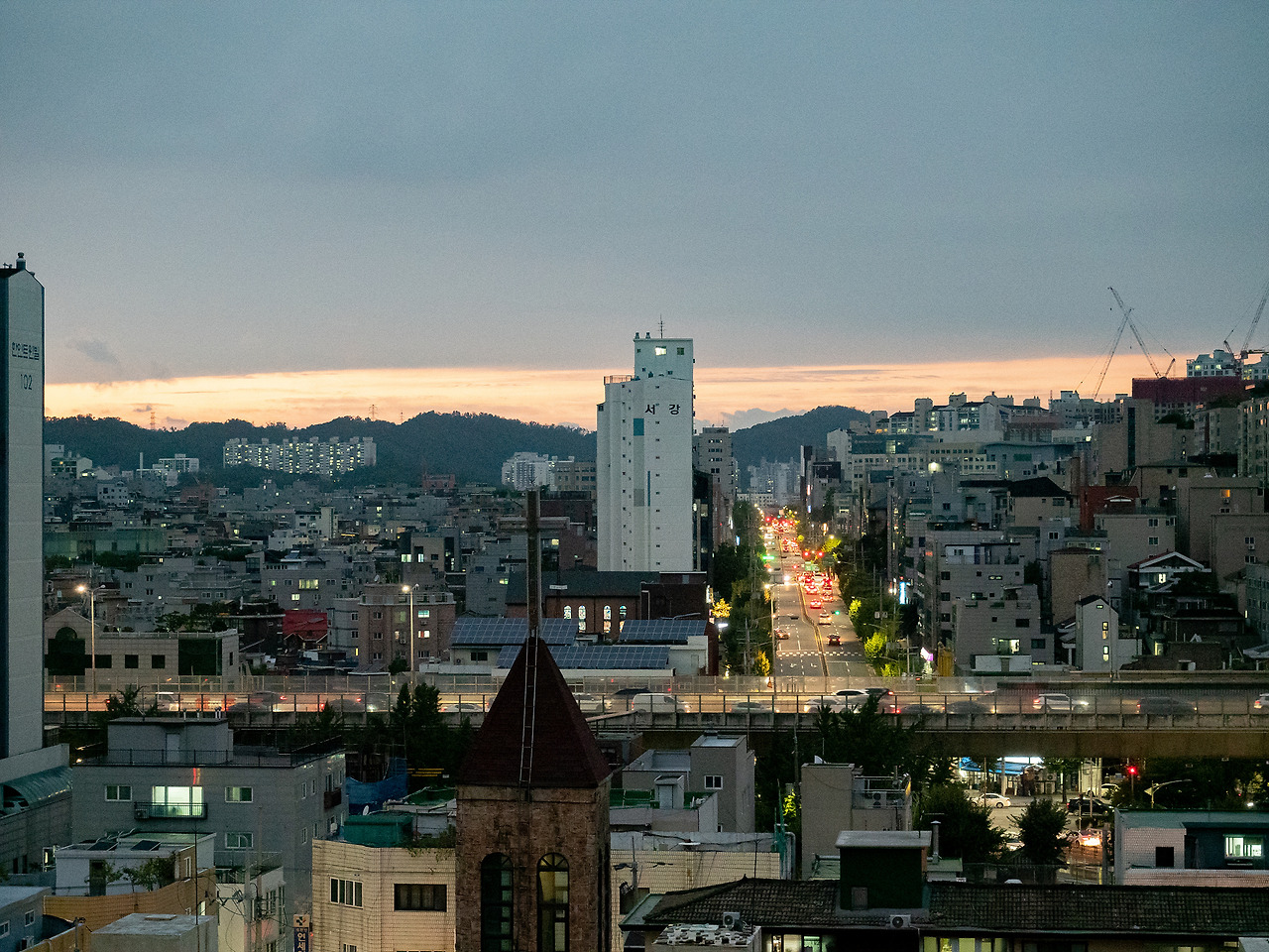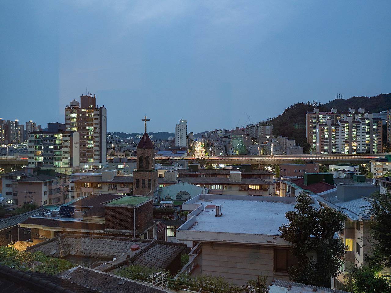 아주 많이 어두워졌고, 연희동을 지나 멀리 보이는 내부순환로까지 노랗게 물들기 시작했다. 오래된 낮은 지붕의 건물들, 교회의 첨탑, 쉼 없이 노란 빛이 오고 가는 내부순환로. 그보다 멀리 보이는 오래된 아파트. 모두 다 적절히 서울을 설명하는 단어겠다.
