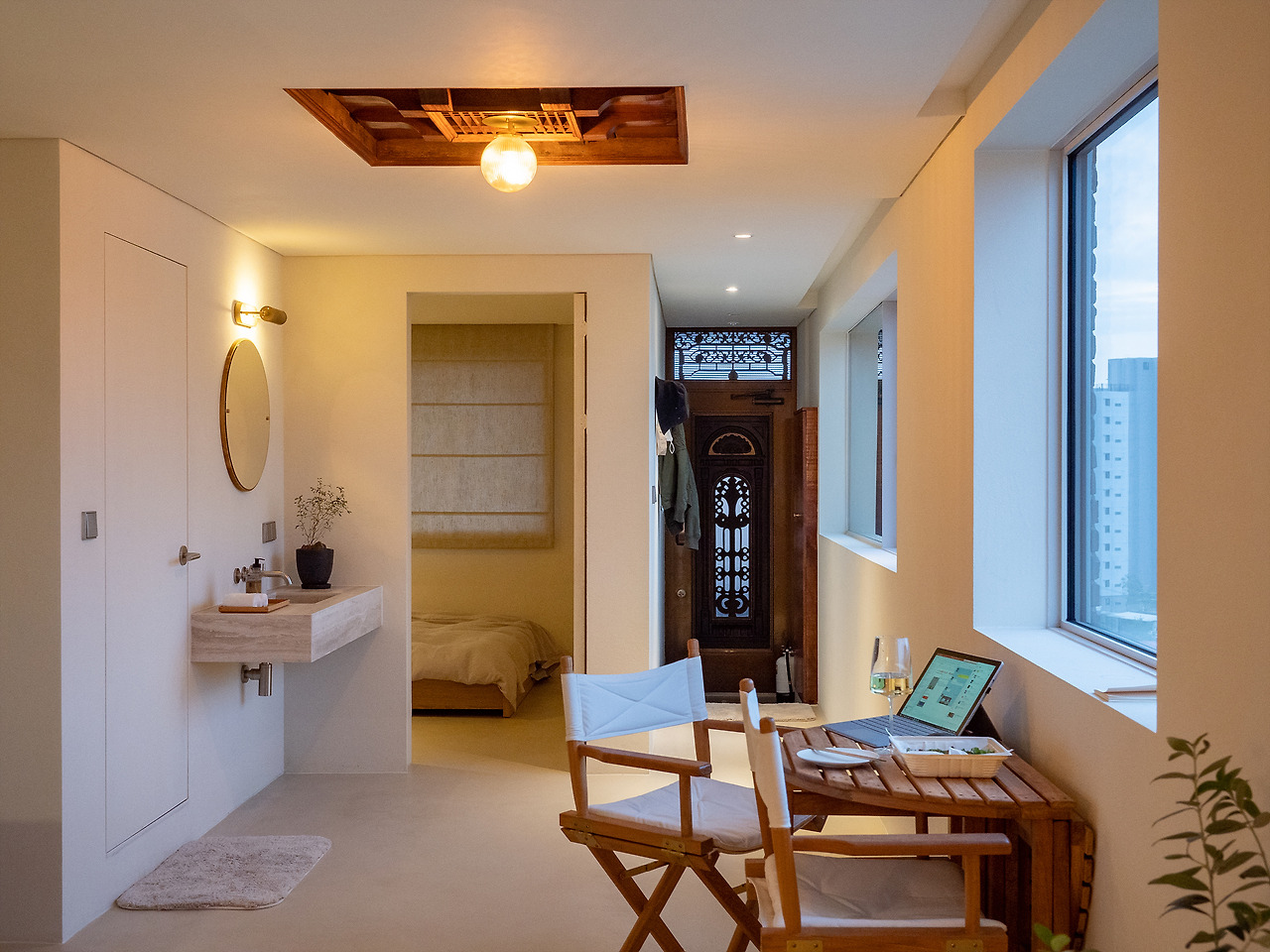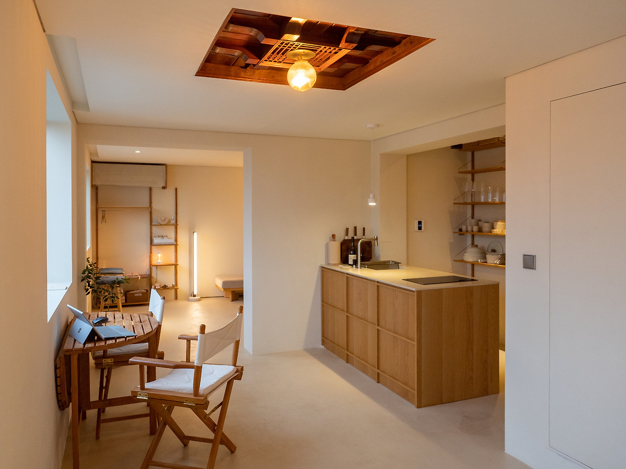 현관을 지나 부엌 겸 다이닝 공간, 그리고 간이 침실까지 하나의 긴 공간으로 이루어져 있고, 그 옆으로 침실과 화장실이 구분되어 있다. 시원하게 뚫린 창이 벽면을 따라 이어져 있고, 거기서 들어오는 햇볕은 꽤나 기분 좋은 따뜻함이었다.