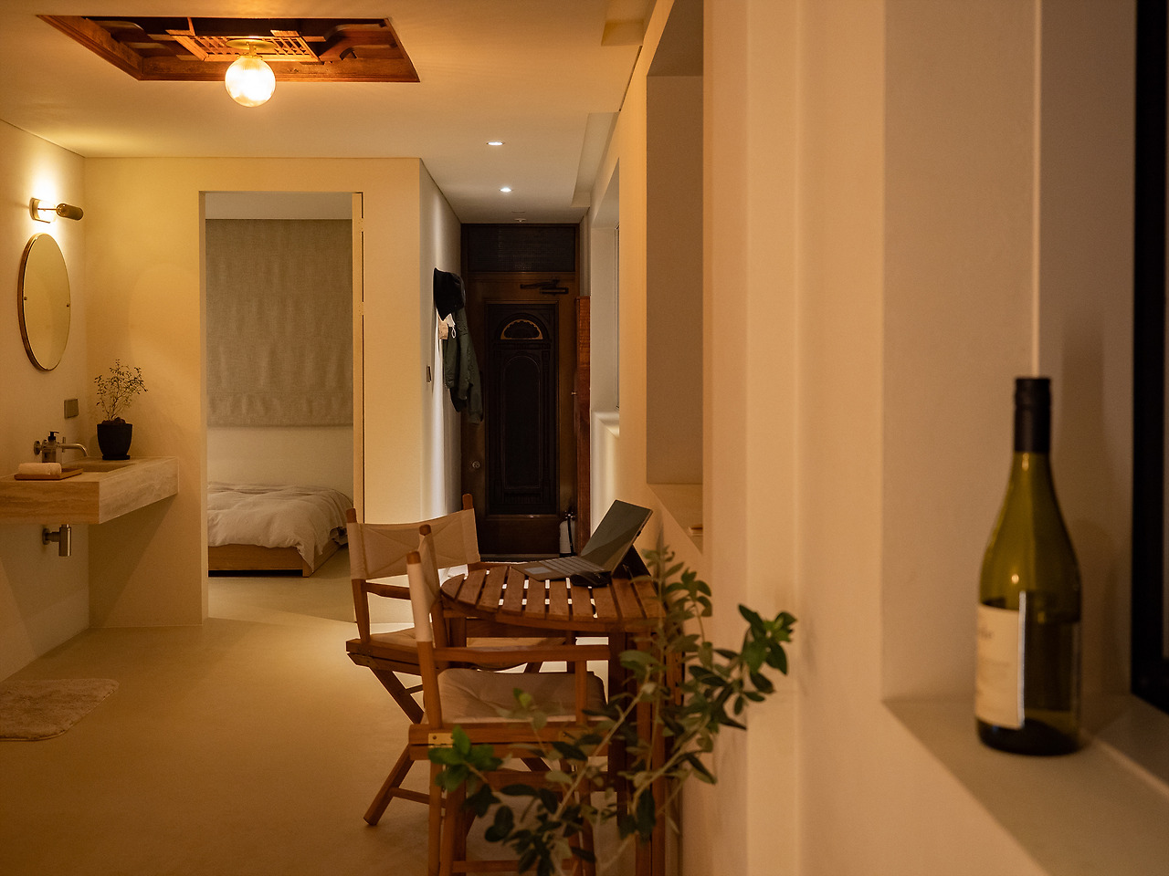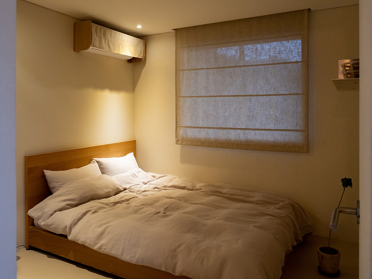 침실. 공간이 크진 않지만 침대는 욕심을 부린 것 같다. 사이즈도 좋았고 침구류도 아주 좋았다. 침실에 별도의 에어컨이 있어서 조금 더운 날이었음에도 쾌적하게 잘 수 있었다. 스테이폴리오에서 큐레이션하는 스테이는 가만히 보면 간접 조명을 정말 잘 사용한다. 노모어 역시 그랬다. 침실 얘기를 하고 있었지만 리빙룸의 간접 조명 역시 훌륭했다. 밤새 놀기 좋았다.