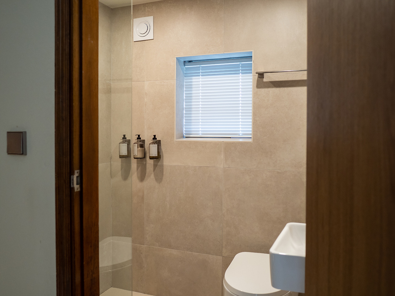 욕실 겸 화장실. 어메니티는 기억나지 않는데 자연스럽고 은은한 분위기로 채워져 있었다. 조금 좁게 느껴지긴 하는데 혼자 혹은 두 명이서 쓰기에 불편할 정도는 아니었다.