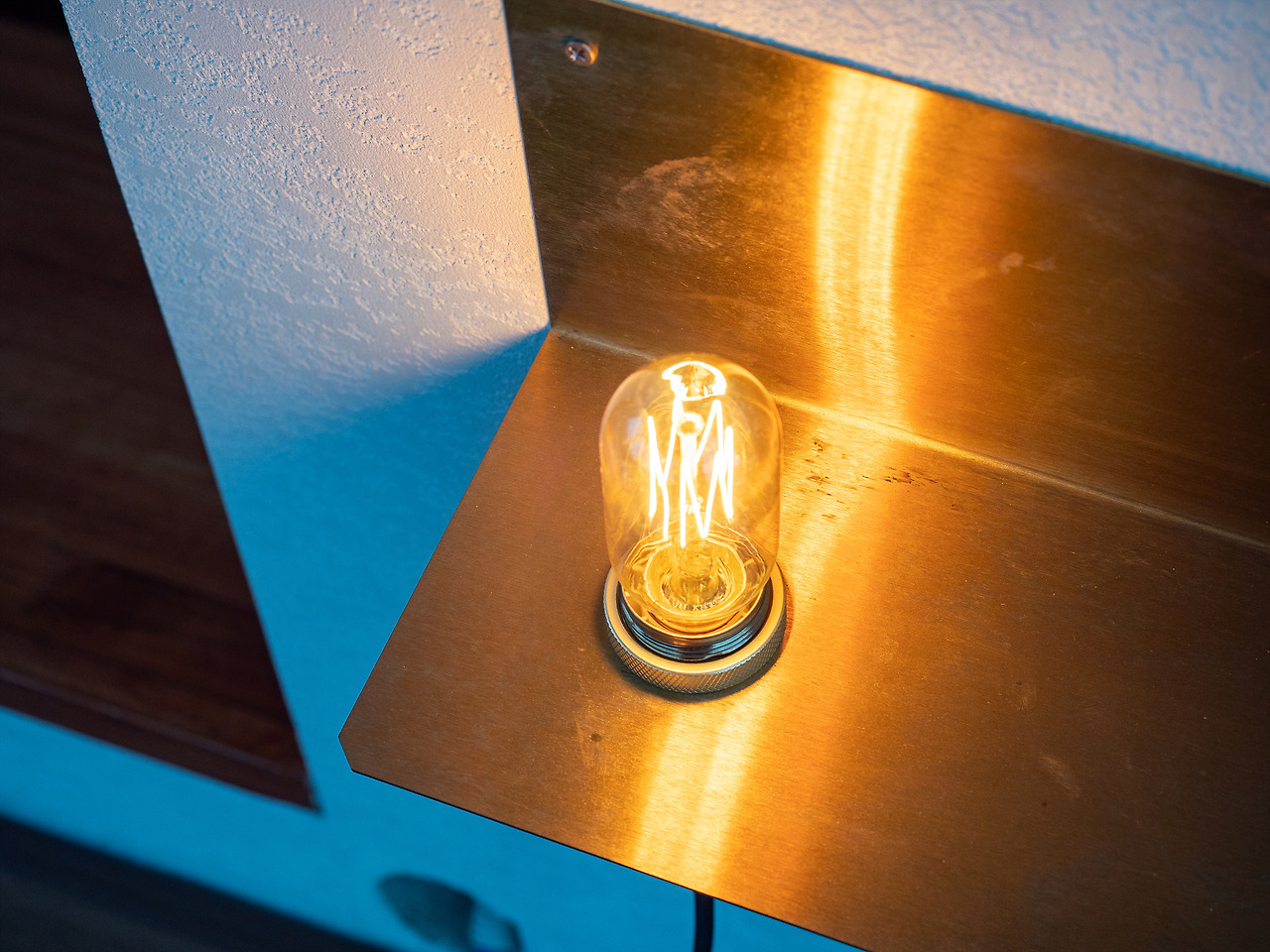 천장의 오래된 듯한 조명도 꽤나 멋스러웠다. 원래부터 있었는지 앤티크한 느낌을 주고 싶어서 선택한 기물인지는 모르겠으나, 광택 나는 나무 베이스에 반사되는 주광색 조명은 너무하다 싶을 정도로 예뻤다.
