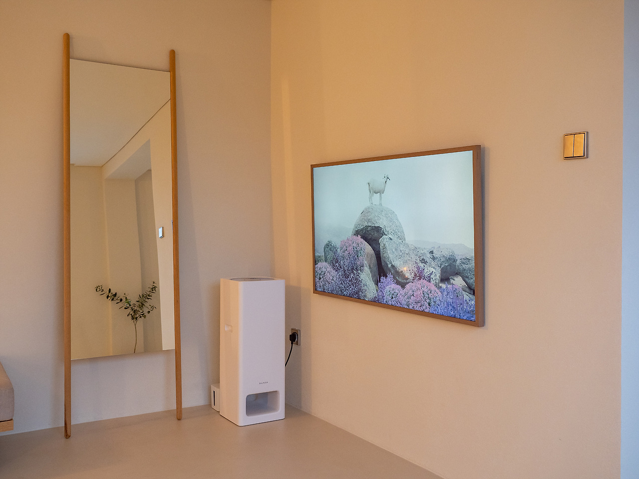 단단하지만 편히 뒹굴뒹굴할 수 있는 소파 겸 간이 침대는 2개가 붙어있어서 꽤 여유롭다. 셀카놀이하기 좋은 커다란 거울과, 액자처럼 보이는 커다란 프레임 TV도 있었다. 허투루 고른 아이템은 하나도 없었다. 우디한 느낌의 가구와 소품들은 노모어의 따뜻한 분위기와 잘 어울렸다.