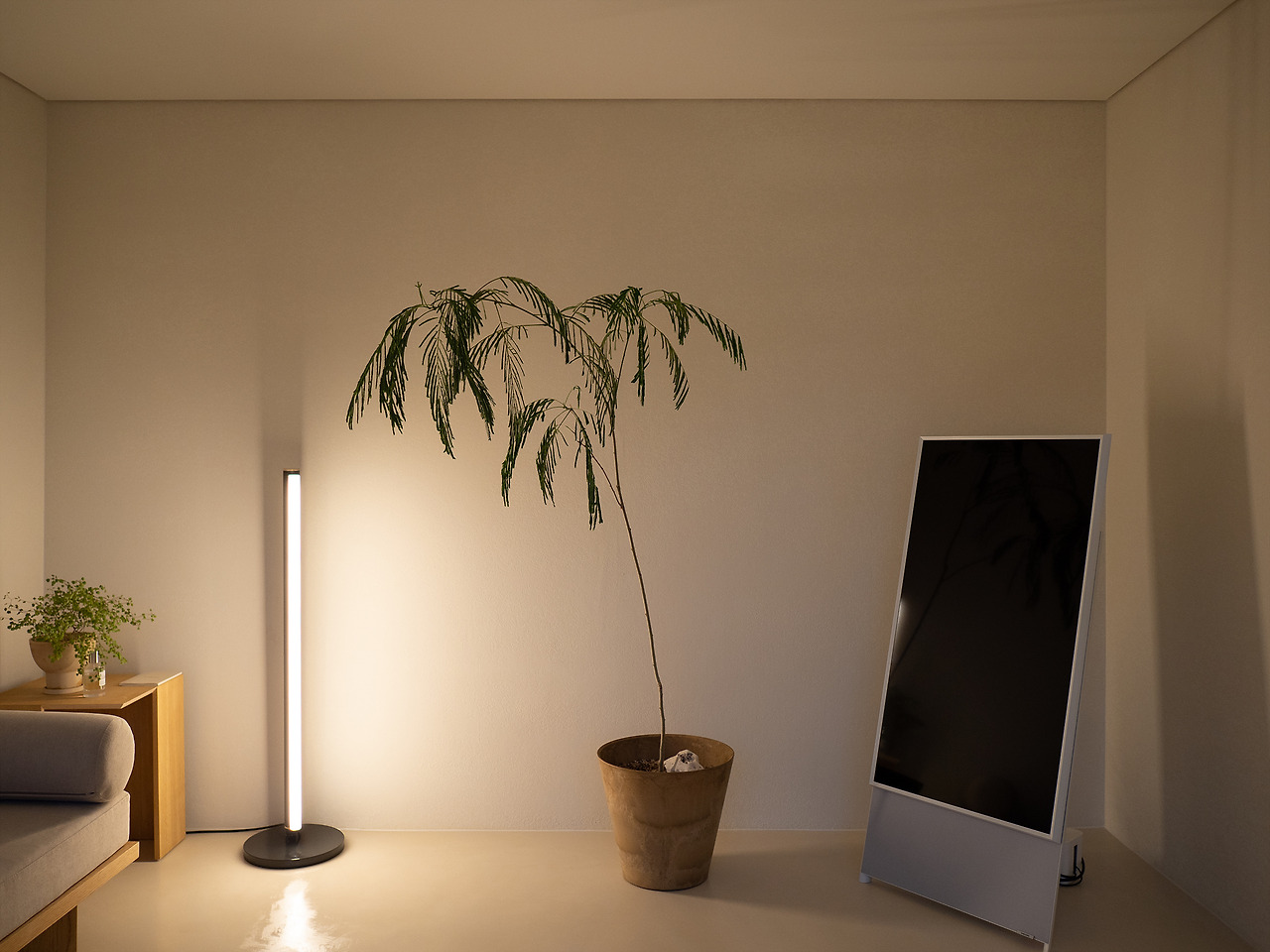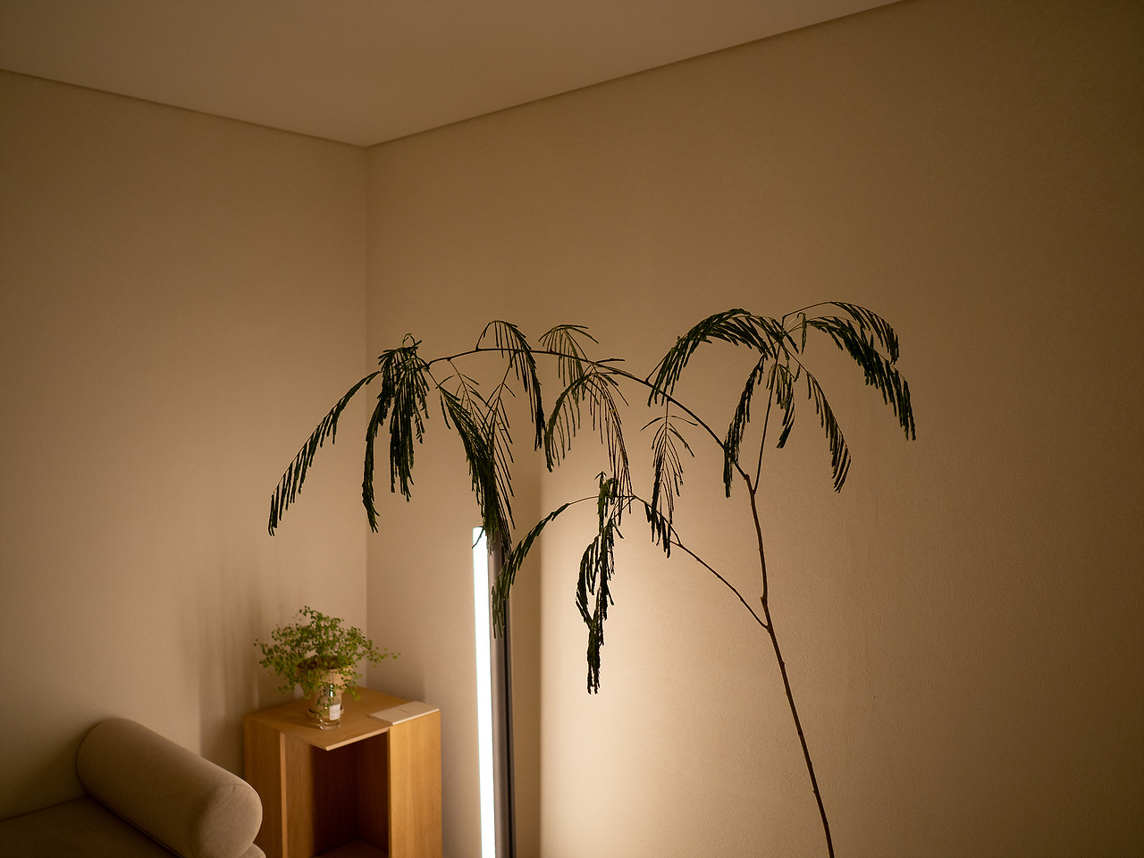 테라스는 조명이 강하지 않다. 작은 간접 조명이 하나 있고, 그 외에는 블루투스 스피커와 발뮤다 조명을 갖고 오는 정도가 전부. 채광이 좋아 낮에는 충분히 밝지만 반대로 밤에는 그만큼 충분히 어두워진다.