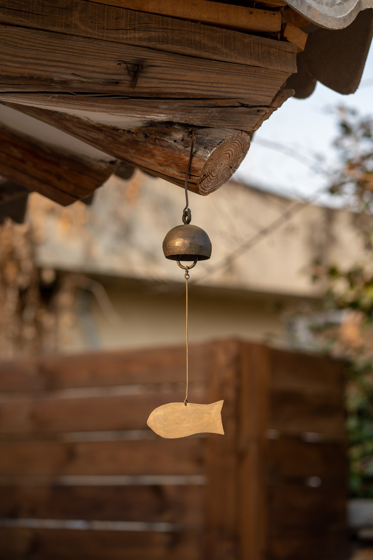 침실은 따로 문 없이 거실과 통해져 있었는데, 답답하지 않아서 좋았다. 침실에도 역시 귀여운 빈티지 조명이 있었는데 서까래와 아주 잘 어울렸다.