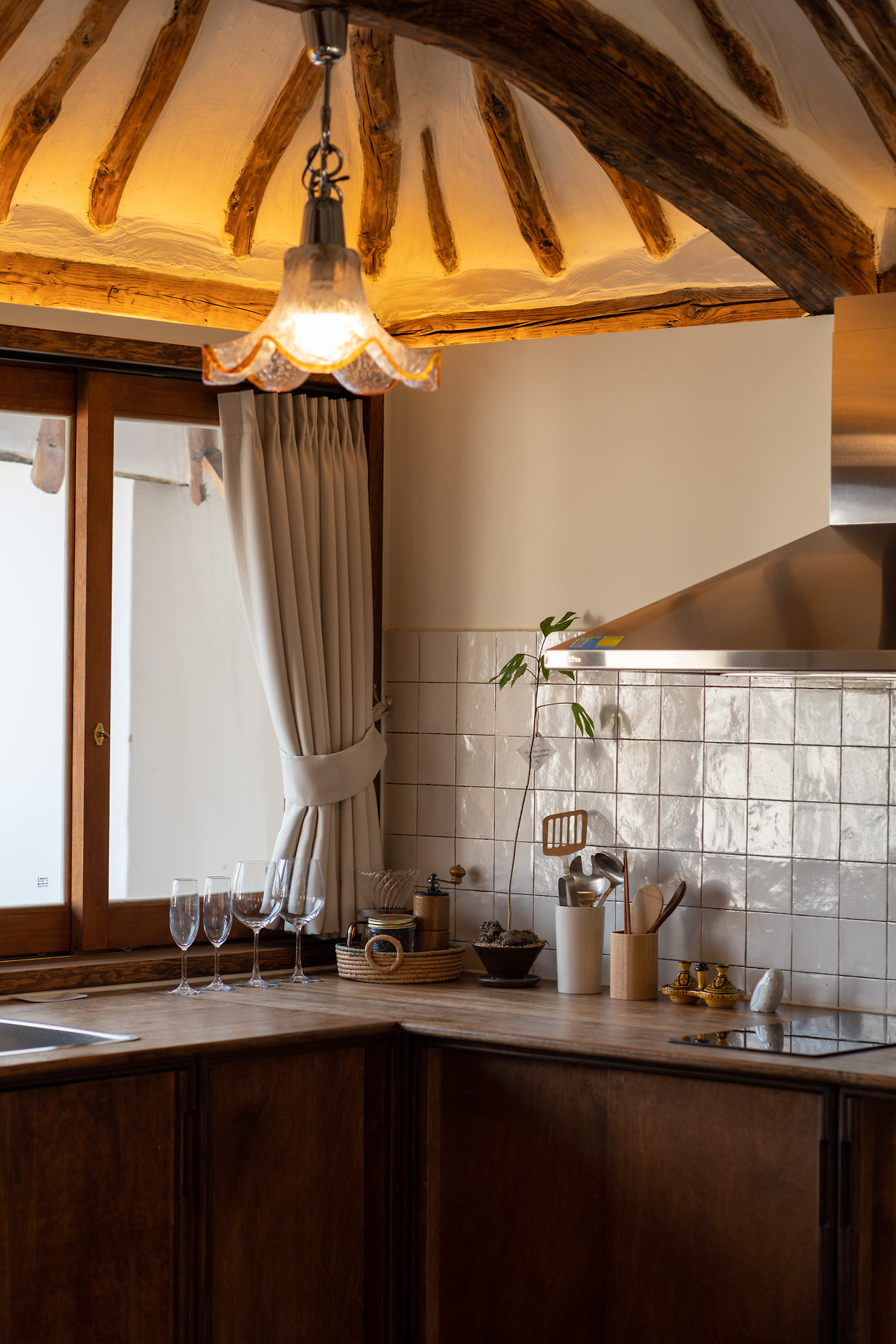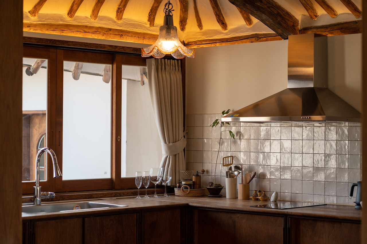 빈티지 펜던트 조명 아래 우드톤의 주방은 마음에 쏙 들었다. 아래 수납장 속에도 취향에 맞는 그릇들이 있었다. 곳곳에 귀여운 오브제들이 함께 있었고, 일회용 수세미 대신에 천연 수세미가 있는 점도 입꼬리에 미소가 지어질 만큼 좋았다. 나중에 나만의 주방이 생긴다면 이렇게 하고 싶을 만큼.