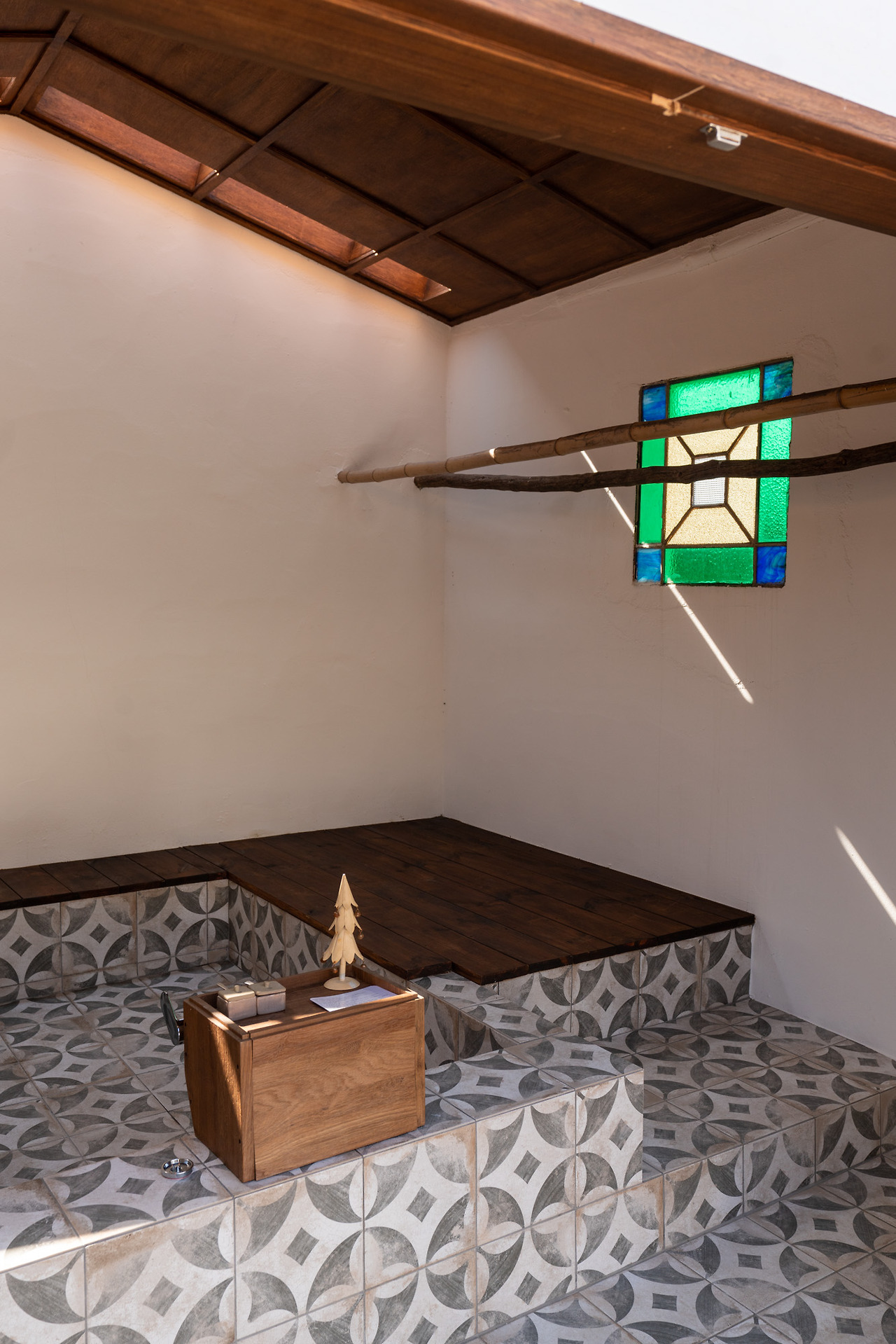 또 다른 하나의 별채에는 족욕 공간이 있다. 문을 여니 빈티지 타일과 스테인드글라스가 먼저 눈에 들어왔다. 많은 사람들이 따뜻한 물에 발을 담그고 좋은 시간들을 보냈겠구나 하는 생각이 들었고, 어떤 이야기들이 오갔을지도 궁금해지는 공간이었다.