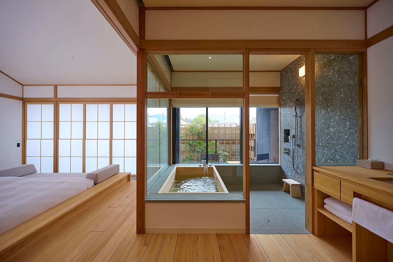 중앙에 정원을 두고 4가지 타입의 객실이 둘러싸여 있다. 정원의 한 그루의 나무와 한 개의 돌에까지 세심하게 신경을 쓰고 룸에는 편백나무 바닥과 욕조 등 나무와 조화된 일본 가옥의 묘미를 느낄 수 있다. 심플하고 고급스러우며 어디에 있든 아늑한 공간에서 마음을 진정시키는 럭셔리한 스테이를 즐길 수 있다.