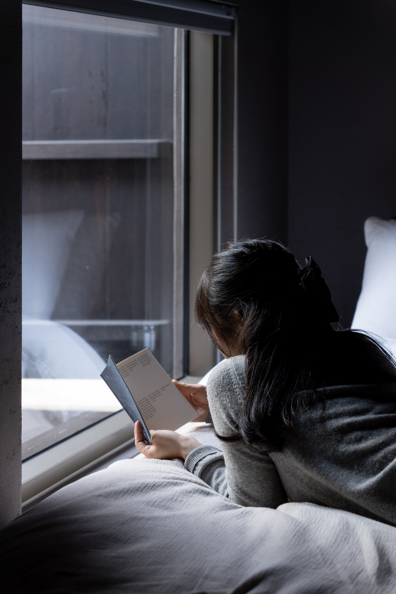 그렇게 스테이에 들어서자마자 짐을 내려두고 바로 침대로 향했다. 어두운 공간 속 침대로 은은하게 들어오는 외부의 빛이 너무나도 따스해 보였다. 그렇게 바로 침대에 걸터 누워 후미진의 매뉴얼과 방명록을 살펴보며 공간을 알아보며 다녀간 이들의 흔적들을 읽어보았다. 개인적인 내용이라 따로 사진은 찍지 않았지만 인상 깊었는지 그 내용들이 머리에 남았다.