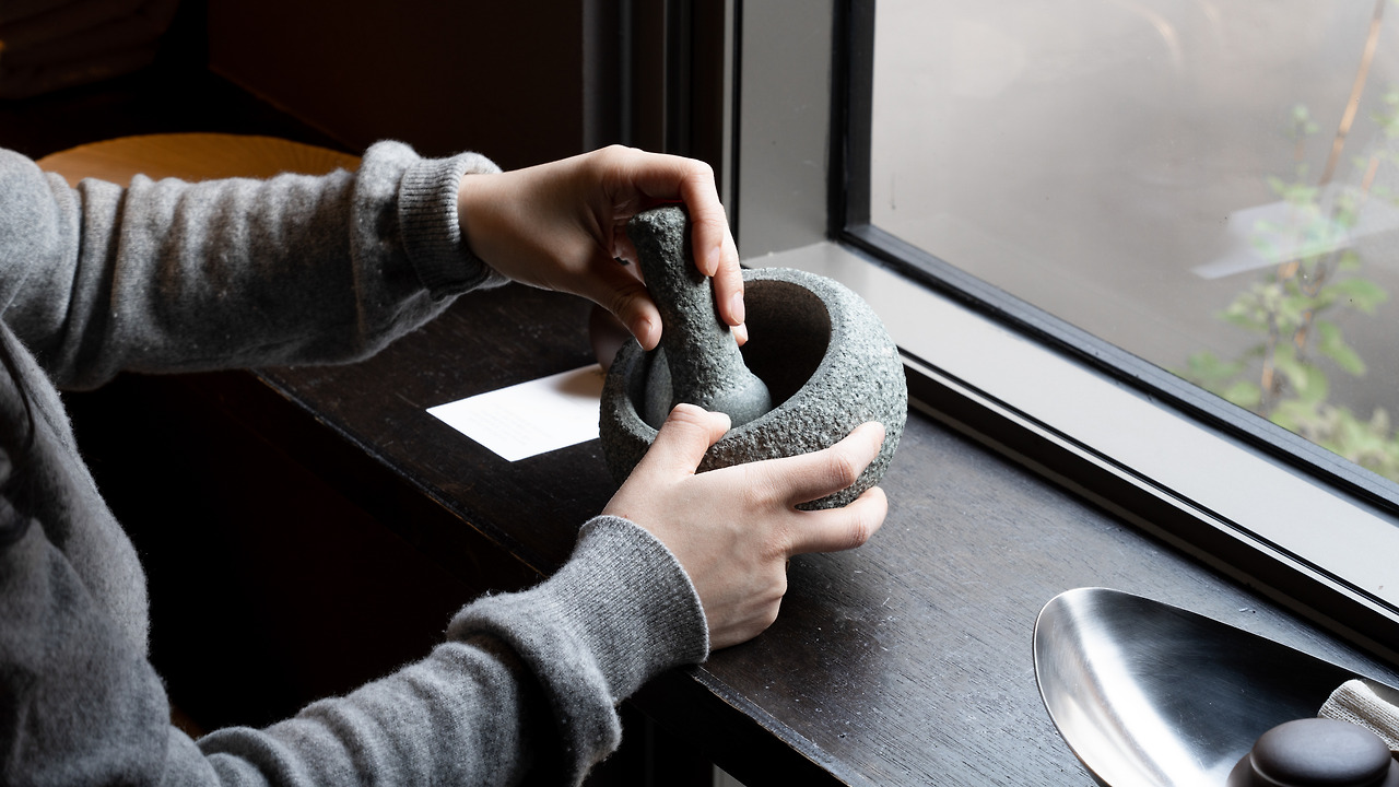 또 후미진에는 반신욕을 즐길 수 있는 공간이 구비되어 있다. 단순히 욕조만 있는 것이 아니라 정신적인 편안함을 위해 약초를 빻아 물에 넣어 향을 같이 즐길 수 있다.