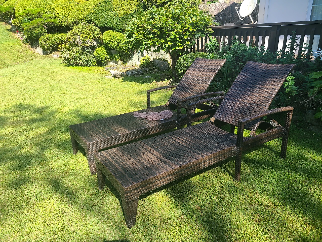 사방이 탁 트인, 썬베드에 남편과 나란히 누웠다.
