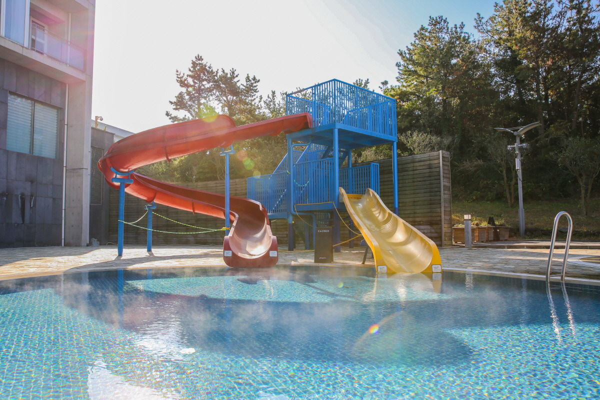 휘닉스 섭지코지의 매력은 수영장에서도 만날 수 있습니다. 실내수영장과 실외수영장 모두 마련되어있고, 두 수영장은 연결되어있어 더욱 편하게 즐길 수 있지요. 특히 야외 수영장은 이국적인 정취가 물씬 풍기는 정원 뿐 아니라 누구나 좋아하는 슬라이드와 선베드 그리고 귀여운 모양의 선 라운저까지 마련되어있어 어느 방향으로 사진을 찍어도 참 예쁘게 나오는 곳이랍니다. 그리고 마련된 빔 스크린을 통해 신나는 공연 또는 영화를 보며 수영을 즐길 수 있어 더욱 매력적이지요.