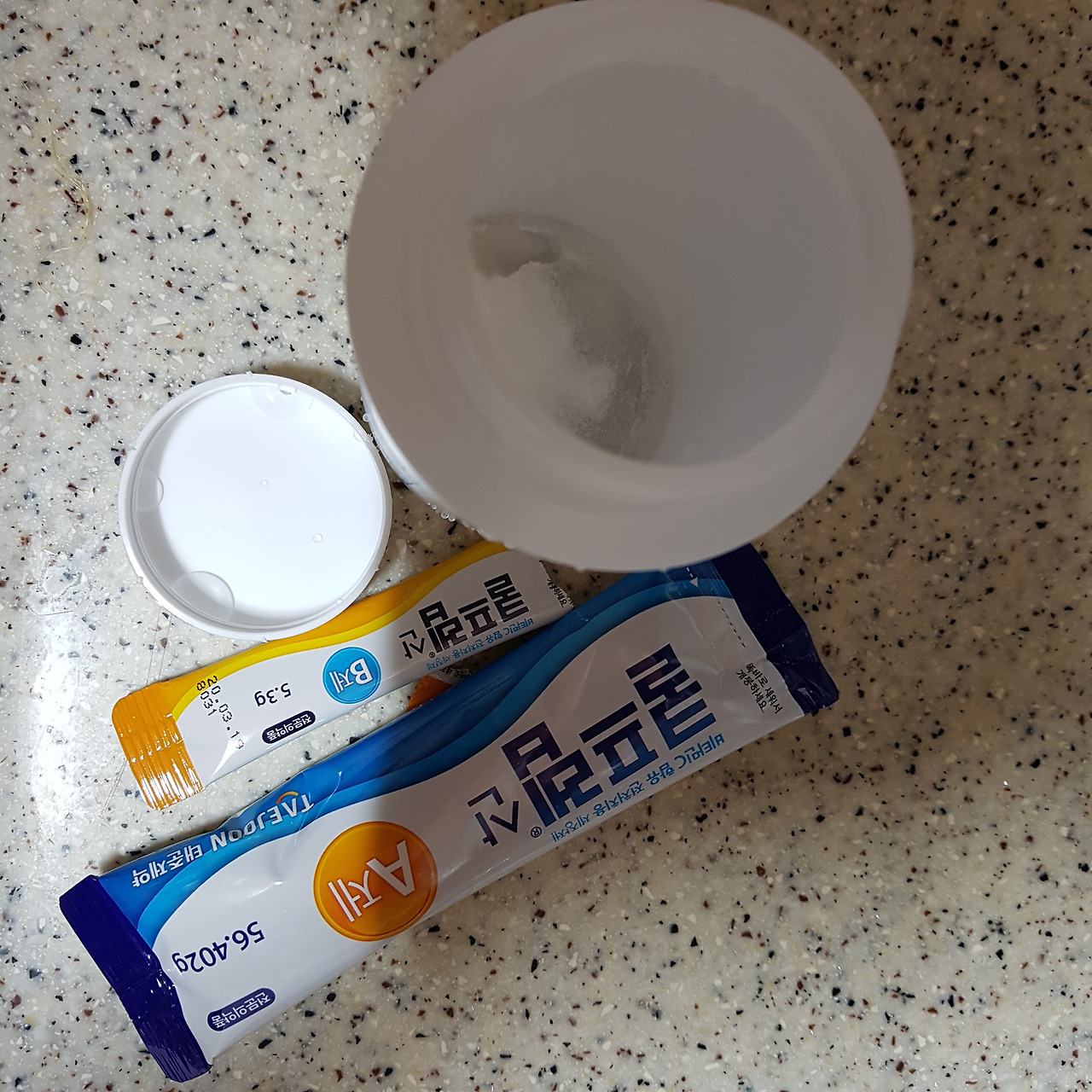 장정결제는 A제 B제 두 포를 물500ml에 잘 섞어 250ml 절반씩 15분 간격으로 먹는다. 중간에 걷거나 제자리 뛰기를 하란다. 아무래도 장속에 잘 침투하라는 의미같다. 이것을 한번 더 반복한다. 즉 장정결제 1L를 15분 간격으로 1시간 정도 쭈우욱 먹어야 하는 것이다. 중간에 물500ml를 보충하면서.
