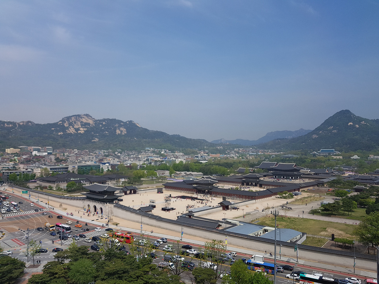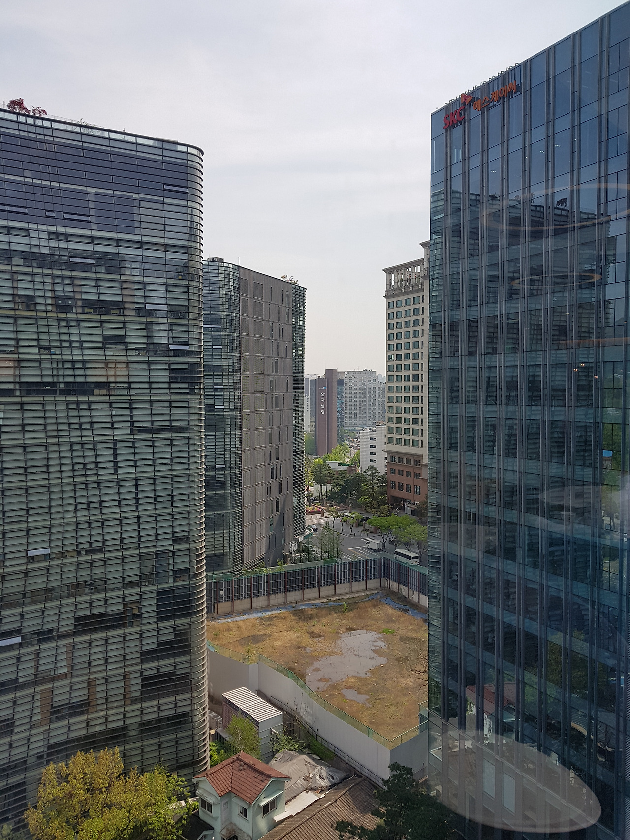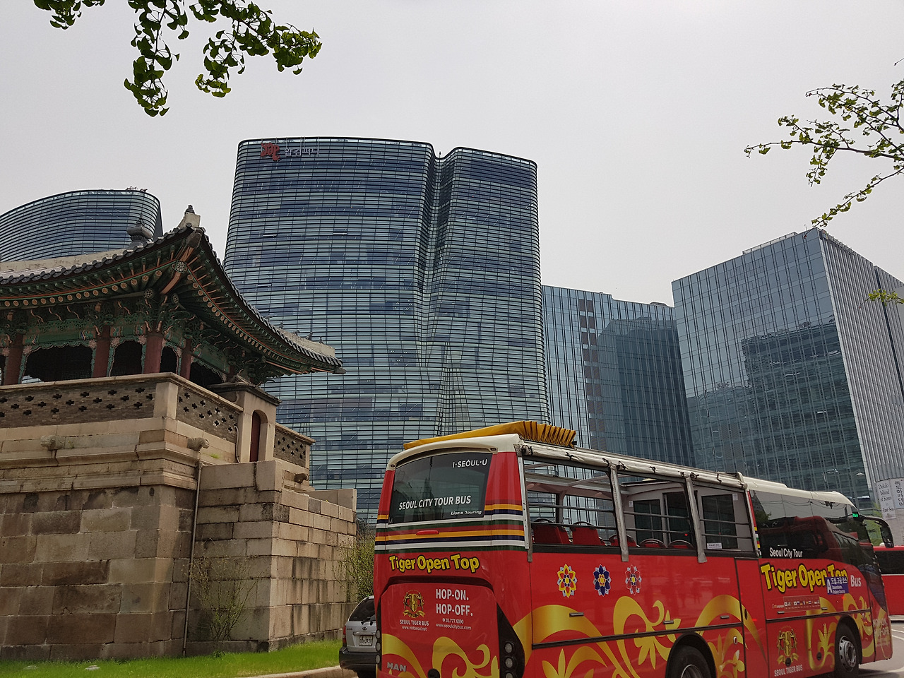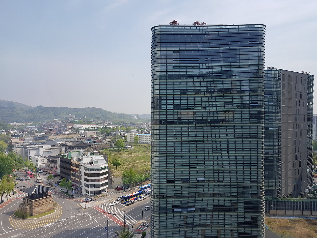 동십자각 방면으로 보면 배흘림 양식의 유리 건물 두개, 이것은 트윈트리입니다.