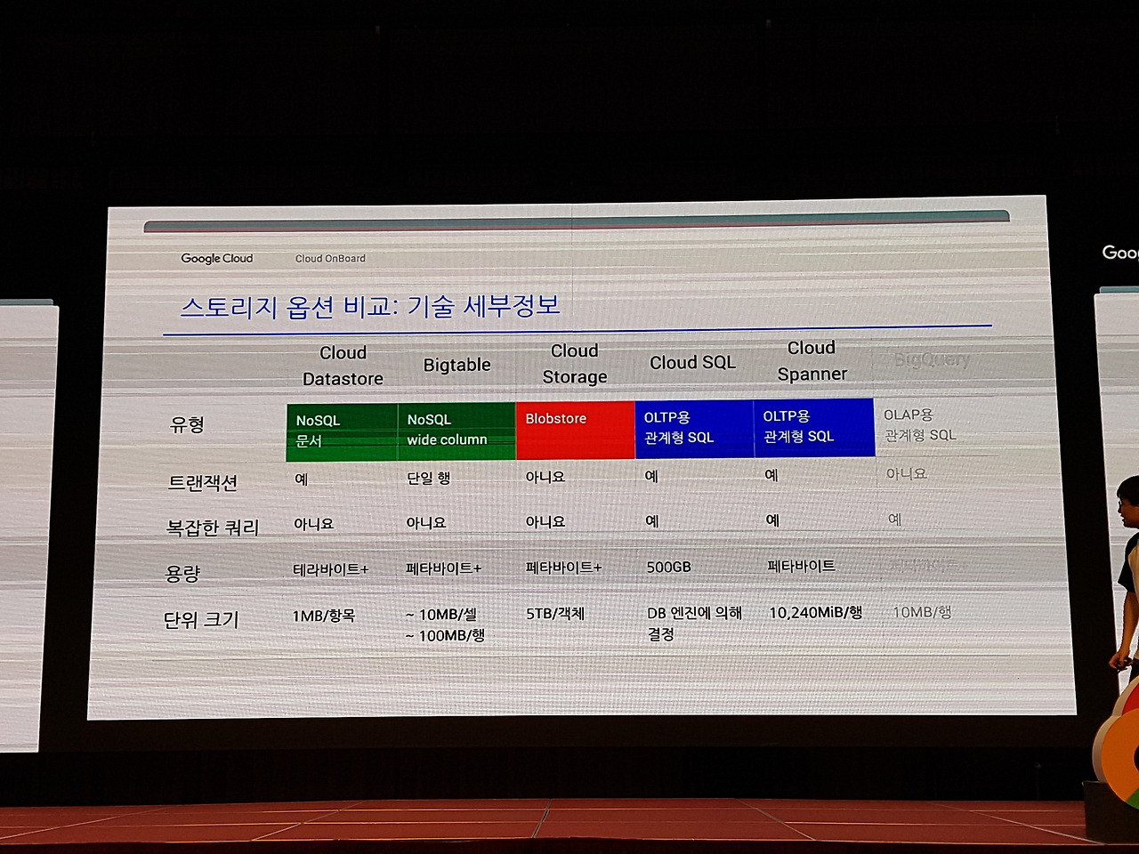 BigQuery: 수백TB를 실시간 분석 가능(실데모: 700GB 큐리에 10초), SQL구문 사용, 일종의 Serverless, Compute와 Storage가 peta-bit급 네트워크