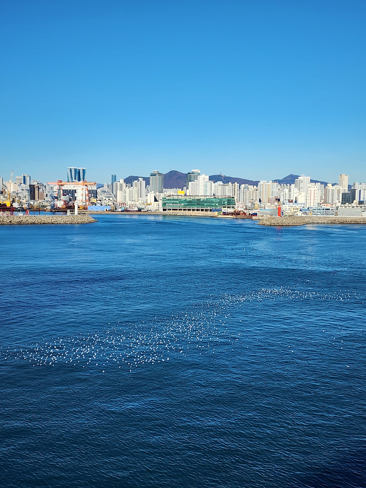 바다에는 갈매기가 떼 지어 둥둥 떠있다가 또 한 무리는 날아올라 다리 남측 편으로 이동하였다.