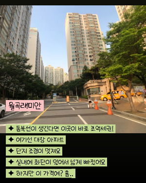 - 래미안월곡을 검색했을 때, 월곡래미안루나밸리가 나올 수 있으므로 헷갈리지 않기! 근처에 창문여고가 나름 괜찮은 학군이랍니다. 실평수보다 더 시원시원하게 빠진 건 매우 장점! 언덕이 많으니 꼭 운동화 신고 임장 가기!