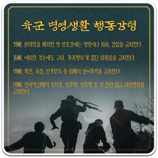 새로운 환경, 새로운 규율이 지배하는 공간이 군대이지만 그 속에도 최소한의 인권 보장과 보편적 윤리는 흐르는 공간임을 꼭 알기 바란다!