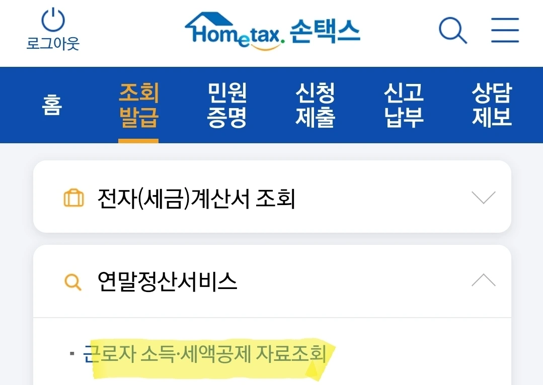 손택스 홈페이지 -> 조회발급 -> 연말정산서비스 -> 소득.세액공제 자료조회