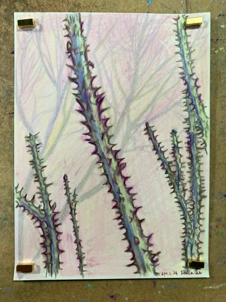 어제 산책길에서 눈길을 끌었던 것 중, 화사한 봄날과 어울리지 않게 비쩍 말라서 삐죽삐죽 가시가 돋아 있던 엄나무를 그렸다. 보기에는 살벌하지만 약재로도 쓰인다는 착한 나무다.