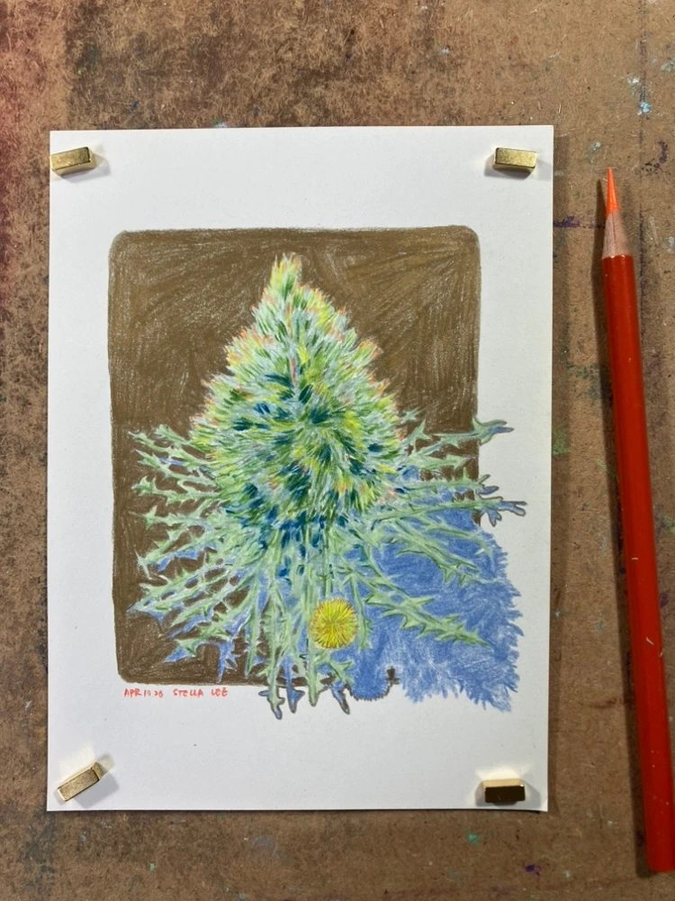 오늘의 소재는 동네 묘목장에서 목격한 어린 서양측백나무와 민들레다.