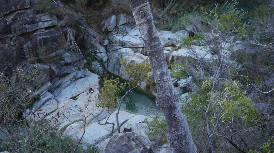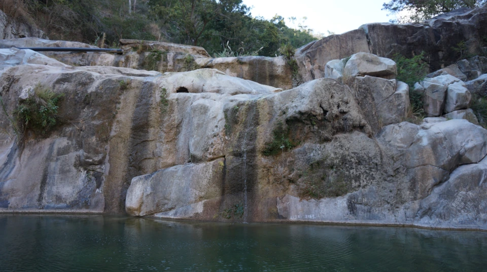 아무리 봐도 길이 아닌 것 같은데 사람도 없고? 불길한 표정으로 그를 따라갔다. 참고로 나는 슬리퍼를 신고 있었다. 그 놈은 단화를 신고 있었다. 마침내 30분 넘게 등산한 끝에 도착한 그 곳은... 폭포가 아니다. 물이 없는걸? 바위에 둘러 쌓인 계곡이었다.