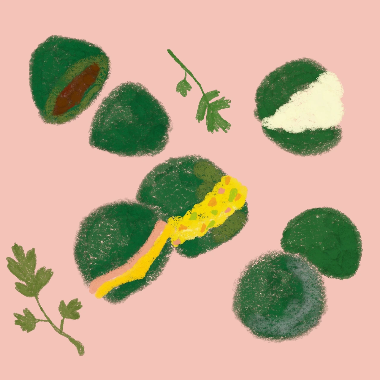 물 건너 도착한 진한 쑥 색깔의 빵 안에는 당도도 양도 적당한 팥이 들었다. 냄비에 물을 붓고 찜기에 푹푹 쪄서 꺼낸 쑥찐빵의 맛은 달콤 쌉싸름했다. 커피를 내려 아침마다, 간식으로 먹다 보니 십 수 개는 금방이고, 놀러 온 가족들에게 소분한 봉지를 몇 번 쥐어주다 보니 수 십 개가 냉동고에서 순식간에 사라졌다.