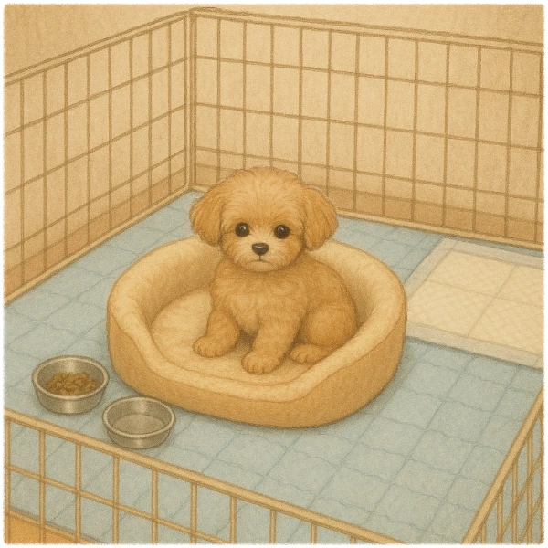 가게 사장님은 강아지의 분리불안을 예방해야 한다며, 아침부터 밤까지 가장 출입이 적은 방에 강아지 울타리를 설치해 두고 적어도 2주간 사료를 주거나 배변패드를 갈아줄 때를 제외하고는 강아지를 안아주지도 바라보지도 말라고 일렀다. 이러한 방식의 강아지 훈련은 많은 보호자들 사이에 그 효과성을 두고 의견이 분분한데, 결론적으로 우리 집에서는 처참히 실패했다. 하지만 지금은 그 이야기는 잠시 미뤄두기로 한다.