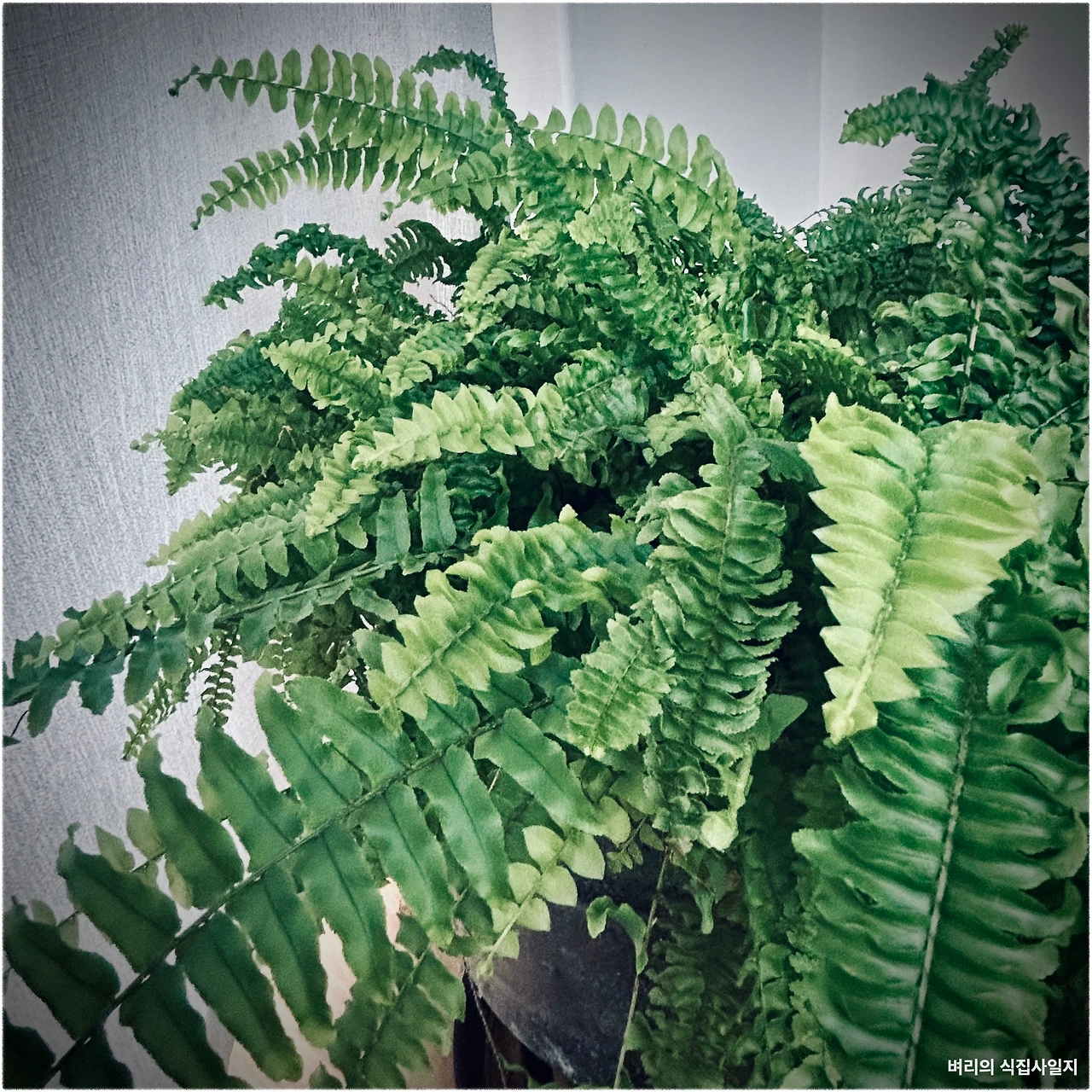 보스턴고사리는 가장 흔한 관상용 고사리 중 하나로, 보스턴에서 관상용 식물로 처음 널리 인기를 얻은 품종이라고 한다. 다른 종들보다 잎이 부드럽고, 길게 아치형으로 늘어지는 특징을 보인다. 우리 집에도 꽤 커다란 보스턴고사리가 회색 시멘트 화분에 심긴 채 거실 귀퉁이 구석에 자리를 잡고 있다. 처음부터 구석에 둔 것은 아니었는데, 말썽꾸러기 강아지를 한 마리 집에 들인 후에 구석자리로 방출되었다. 강아지가 자꾸 늘어진 잎을 물어뜯으며 장난을 쳐서 어쩔 수 없었다. 광량이 부족해서 시들해지지 않을까 걱정했는데, 걱정이 무색하게 계속 새순을 내며 잘 자라고 있다.