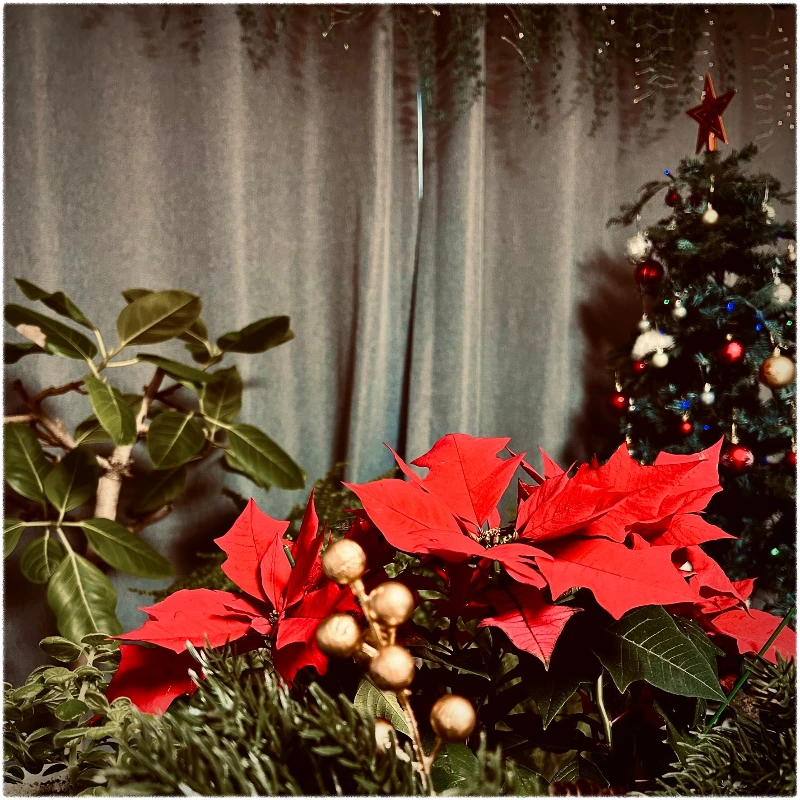 미처 트리에 매달리지 못한 오너먼트들은 벤자민이나 녹보수 같은 나무에 조금씩 달아 두었다. 창가에는 겨우살이 모양의 가랜드를 드리웠고, 실내 정원 울타리에 매달아 둔 벽트리는 본래 벽난로 장식용으로 나온 것이다. 울타리 안쪽으로는 포인세티아 화분을 맨 앞으로 배치했고, 마지막으로 장식장 위에 스노우볼과 톰테 인형, 루돌프, 촛불 장식 따위를 올려두었다. 올해의 크리스마스도 이렇게 꾸며졌다. 집안의 크리스마스 풍경이 깊어가는 겨울 동안 포근한 안락함으로 가족을 감싸주길 바라면서.