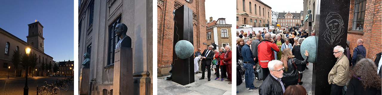 포인트: 닐스 보어 청동 흉상, 옆에는 지진학자 잉에 레만 기념비