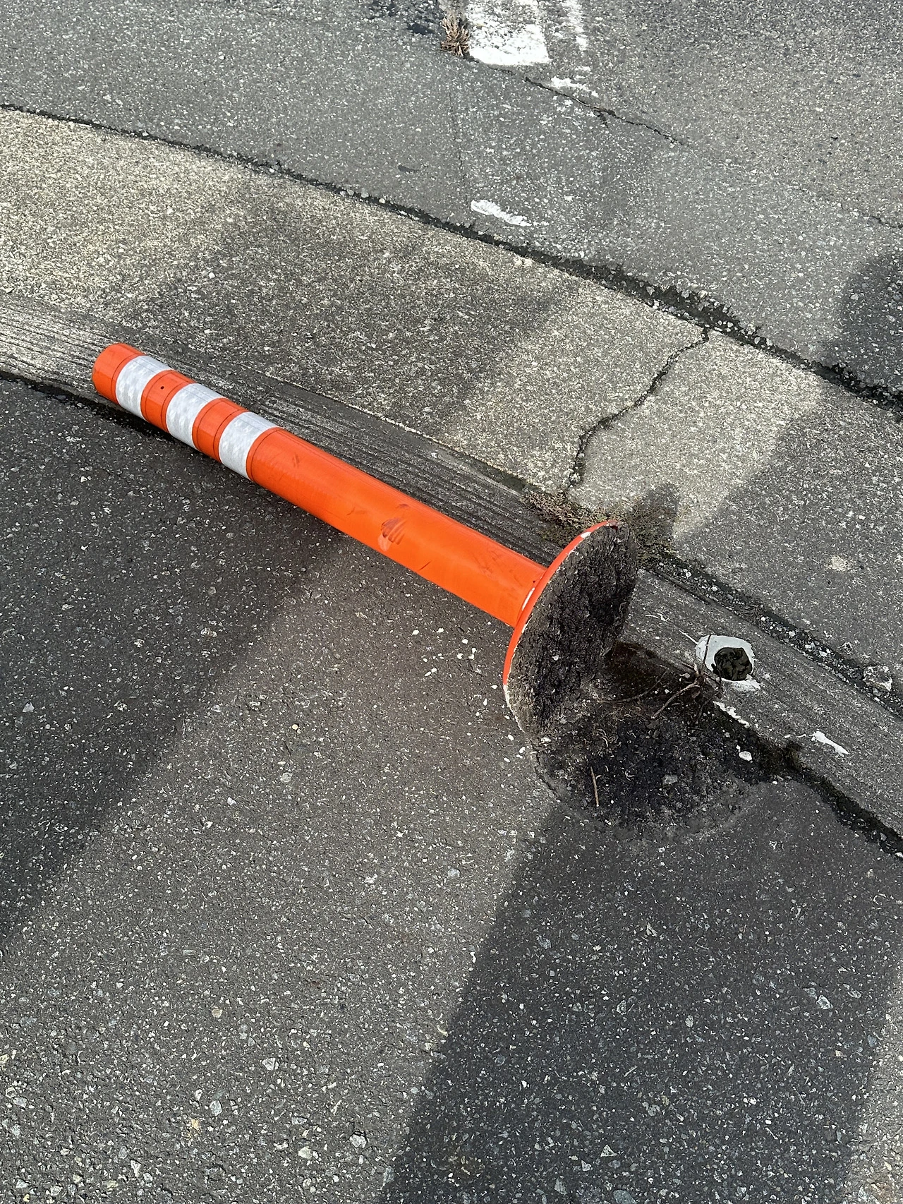 도요오카에서 마주친 부러진 차선 규제봉. 누군가가 실수로 치고 만 것이겠지? 이렇게 어딘가 고장 나거나 망가진 걸 보면 사진으로 남기고 싶다.