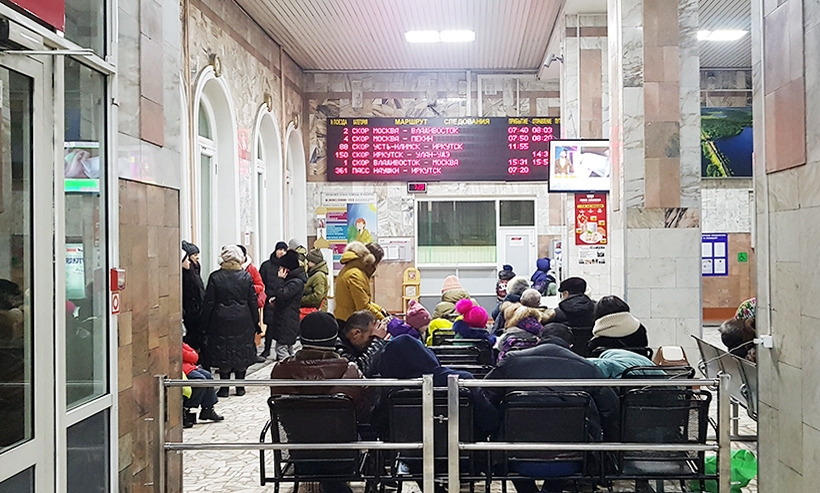 6시 30분 새벽기차를 타기 위해 채비를 서둘렀다. 숙소에서 도보로 20분 거리에 있는 역에 도착하니 대합실에는 이미 열차를 기다리는 사람들로 가득했다. ‘시베리아횡단열차’는 모스크바-블라디보스톡을 왕복하는 기차로 횡단하는 데에 총 7일의 시간이 소요된다. 이르쿠츠크역은 시베리아 횡단열차의 중간지점 역으로 이곳에서 기차를 타면 종착역인 블라디보스톡까지 3일의 시간이 걸린다.