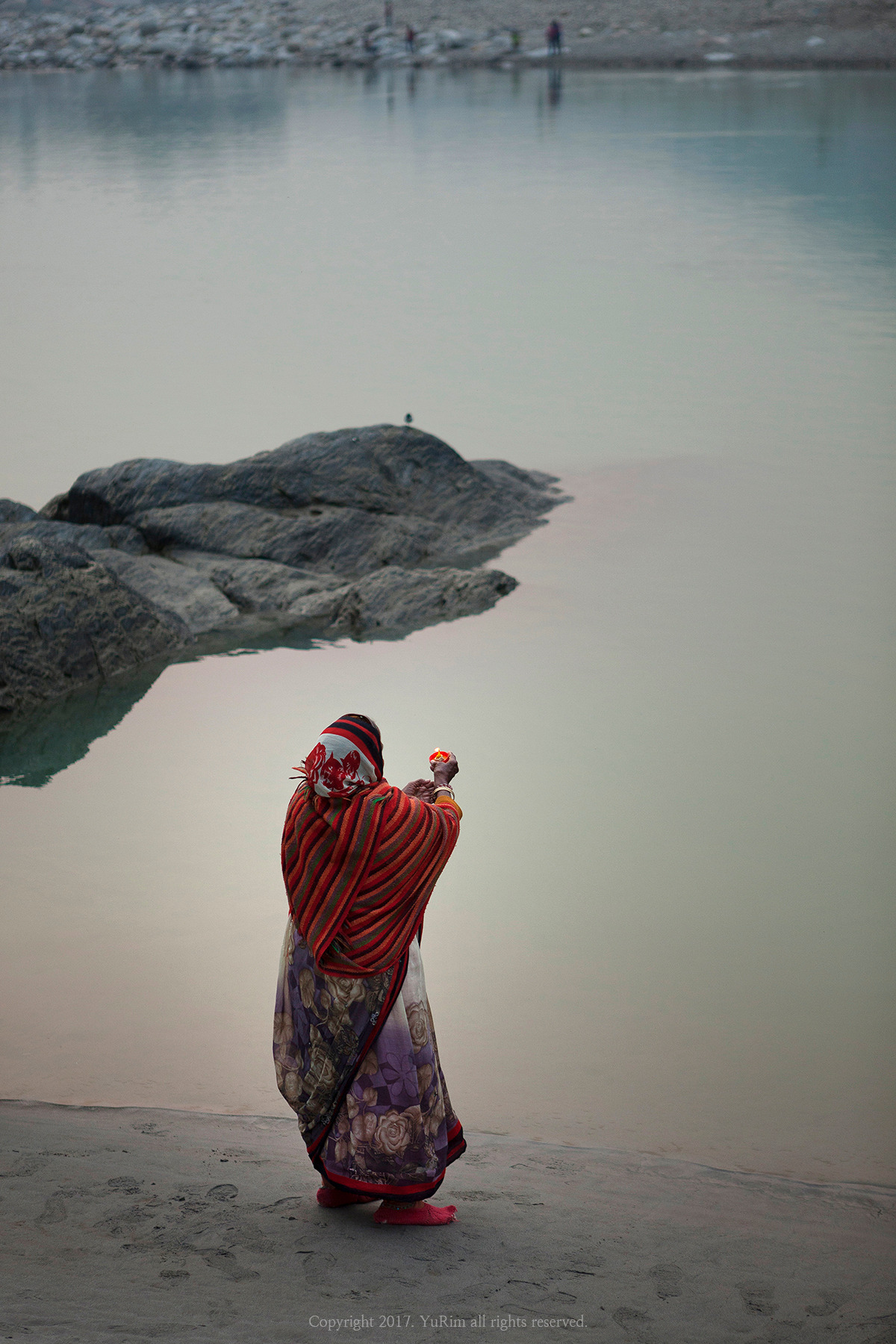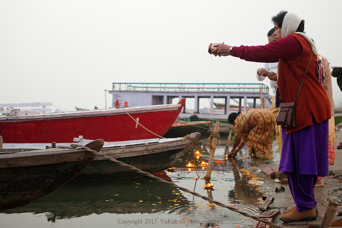 신께 경배를 드리고 강물에 몸을 담그며