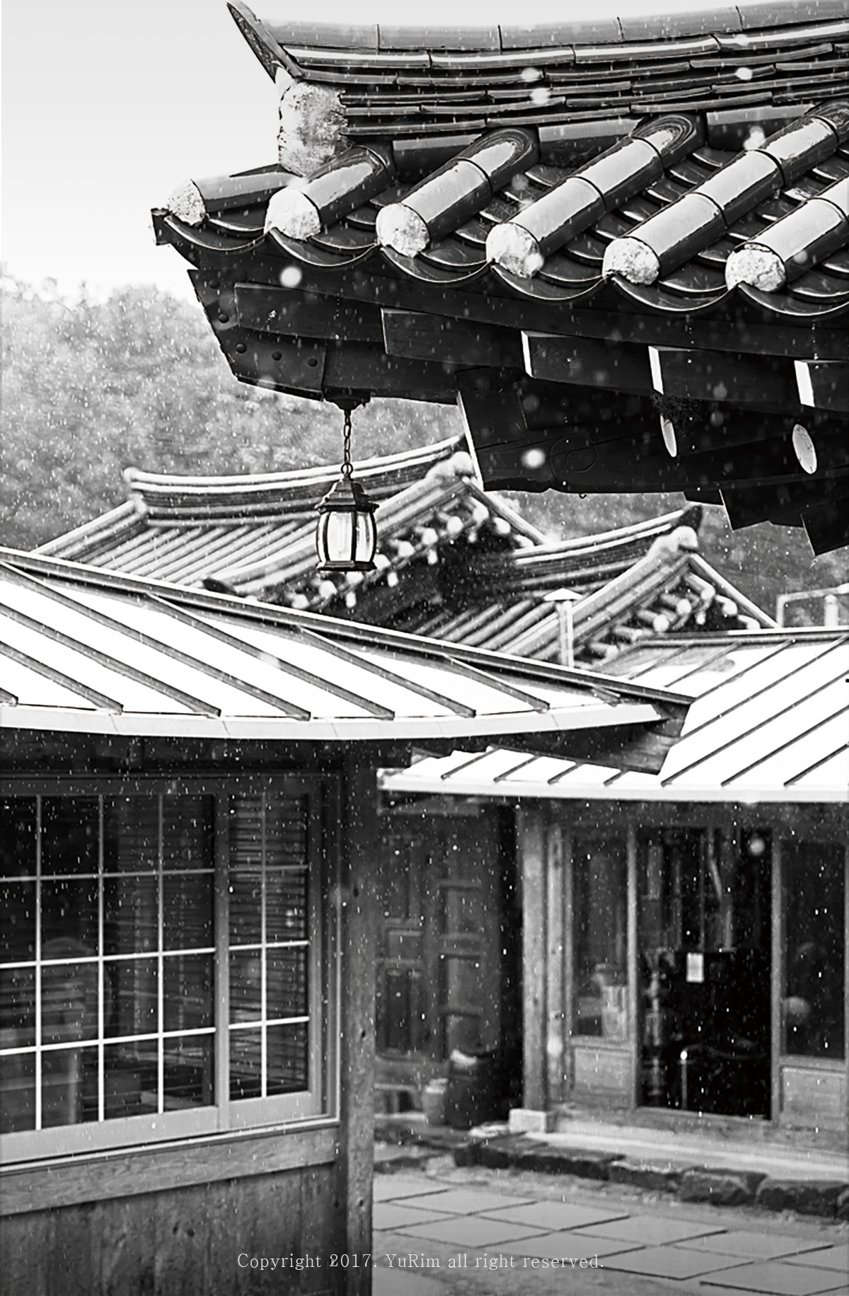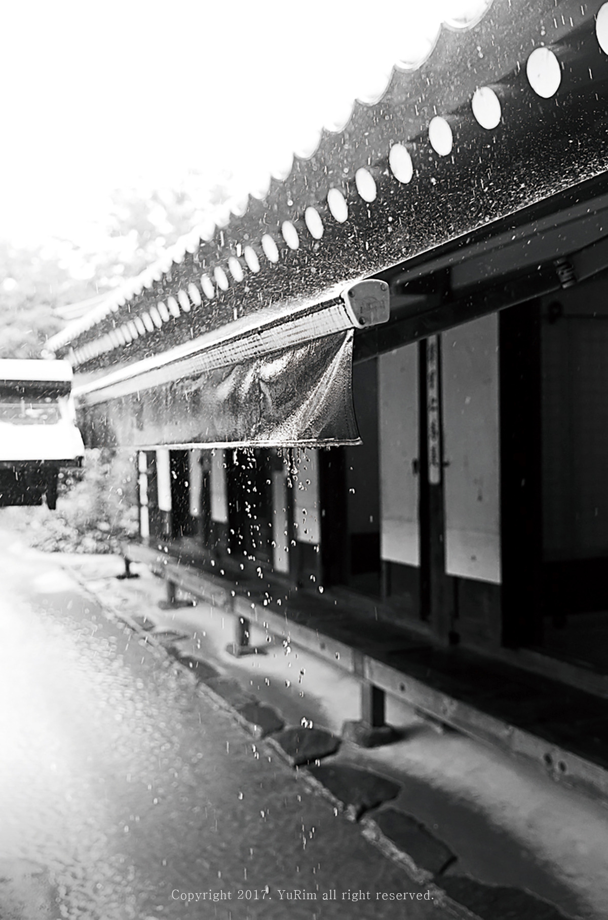 처마 끝으로 하염없이 흐르는 빗물을 바라보니