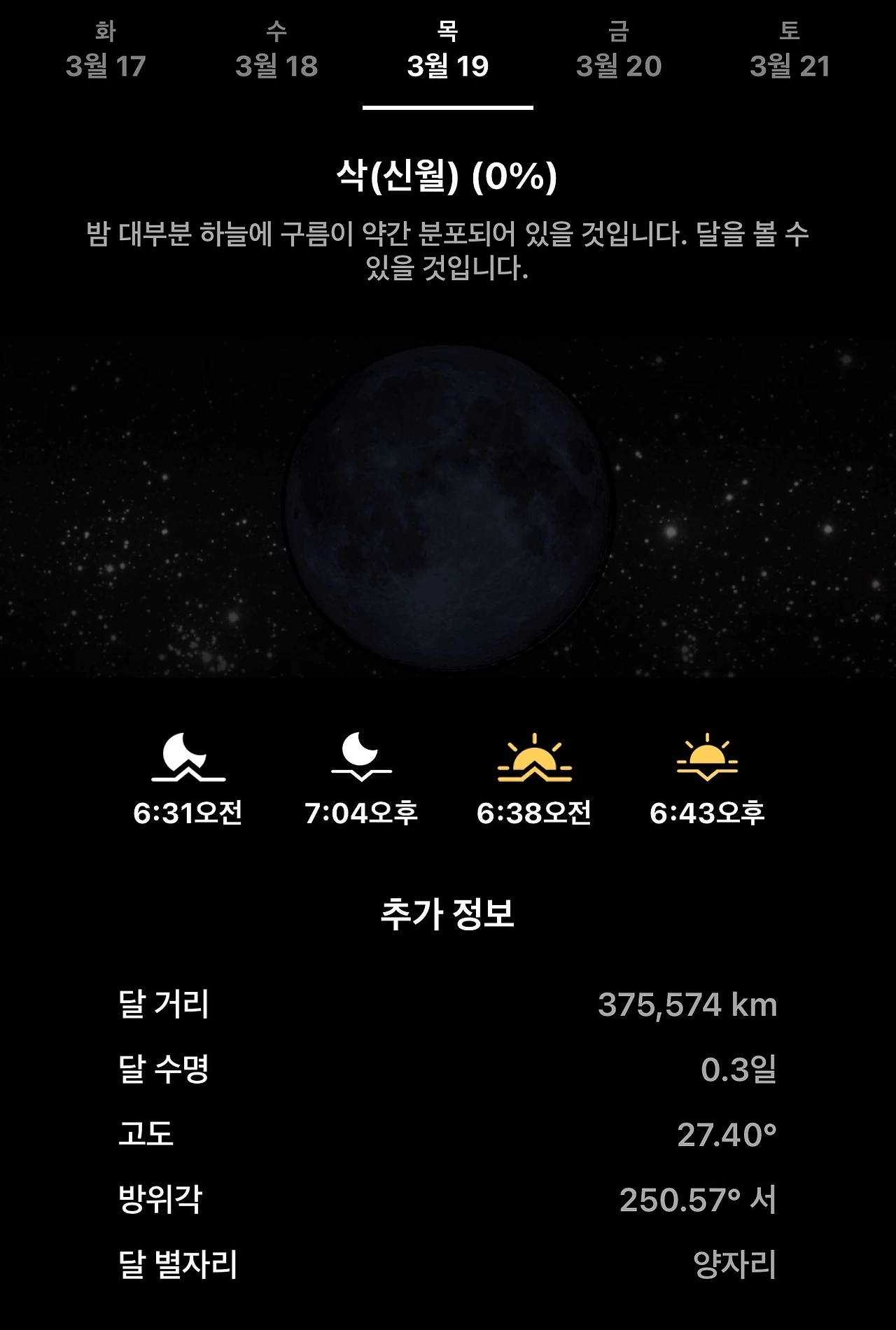 3월 19일 오늘은 물고기자리의 삭, 신월이다.