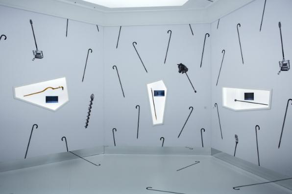 두번째 방은 5가지 18세기의 지팡이들이 있다. 이는 모두 에밀 에르메스 소장품에서 가져온 것들이다. 촛불이 켜지는 지팡이, 누르면 혓바닥을 메롱 하고 내미는 말 머리의 지팡이 등 이들의 기능은 함께 전시되는 작은 모니터 속 영상을 통해 알 수