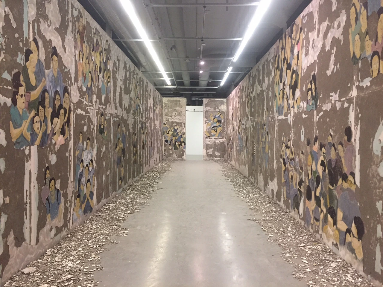 이처럼 ‘이웃’은 집과 가정, 나라 등 폭넓은 개념으로 사용되었다. 그리고 비엔날레에 전반적으로 현 정세에 대한 직접적인 비난은 없었던 점은 따가운 눈초리를 받는다. 작년에 실패로 돌아갔던 터키의 또 다른 혁명 시도와 그 후로 이어졌던 주도자들의 죽음과 동조한 사람들에 대한 탄압이 있었음에도 그 어디에도 터키의 현실을 직접적으로 담은 작품은 볼 수 없다고 말이다. 가장 직접적으로 표현한 작업은 2013년 터키 반정부 시위를 보여주었던 라티파 에스학 (Latifa Echakhc)의 작업이었다. 마주 보고 있는 두 벽의 벽화는 다 헤지고 떨어져서 바닥에 루인처럼 쌓여있는 것이 마치 엄청나게 희망적이었던 지난 몇 년 전 순간의 영광 이후 이어진 비관주의를 보여주 듯 말이다.