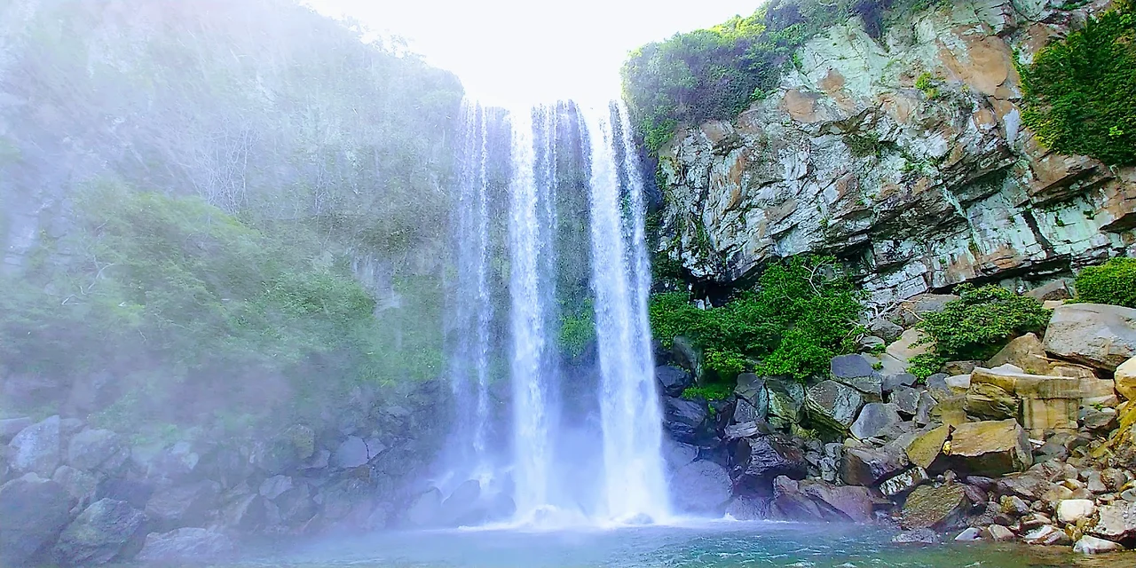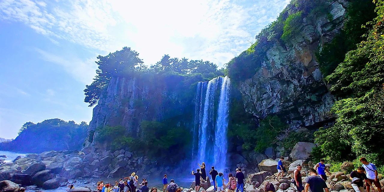 시원하게 떨어지는 폭포가 바다로 흘러간다. 세계에서도 몇 안 되는 바다와 맞닿은 폭포다. 아이슬란드에서도 굴포스를 포함해 유명한 폭포란 폭포는 다 봤지만 내 마음을 가장 많이 빼았은 건 정방폭포다. 그래서 제주도를 올 때마다 정방폭포를 맞이하는데, 그 앞에 서서 떨어지는 물이 만들어내는 물보라와 바람을 오롯이 온몸으로 받아내는 게 즐겁다. 마치, 내 몸에 덕지덕지 붙어 있는 근심들을 날려버리는 그 느낌에 중독되었는지도 모르겠다.
