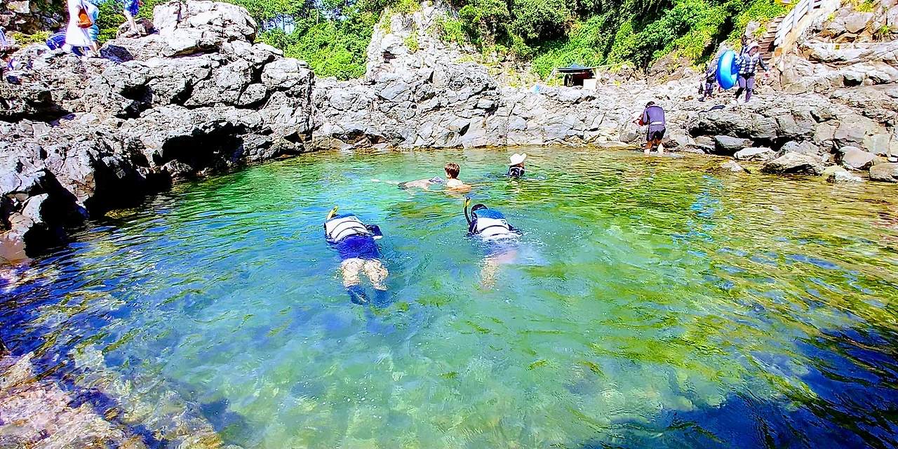 하지만 어느 지인이 간다면, 무조건 추천할 곳. 황우지 해안의 선녀탕이다. 자연이 만들어낸 수영장으로 스노클링을 하기 딱 좋다. 아이들도 머리를 물에 박고는 당최 나올 생각을 안 했던 곳. 고여 있지만 파도의 힘을 받아 자연 친화적인 파도풀이 완성되는 곳이다. 외국인들도 많이 찾고, 정말 신기해하며 즐거워하는 모습이 글로벌 spot으로도 뒤지지 않음을 증명해내고 있었다.