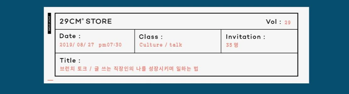 장소 : 29CM STORE 서울시 서초구 강남대로 405 통영빌딩 1층 (강남역 10번 출구 앞)