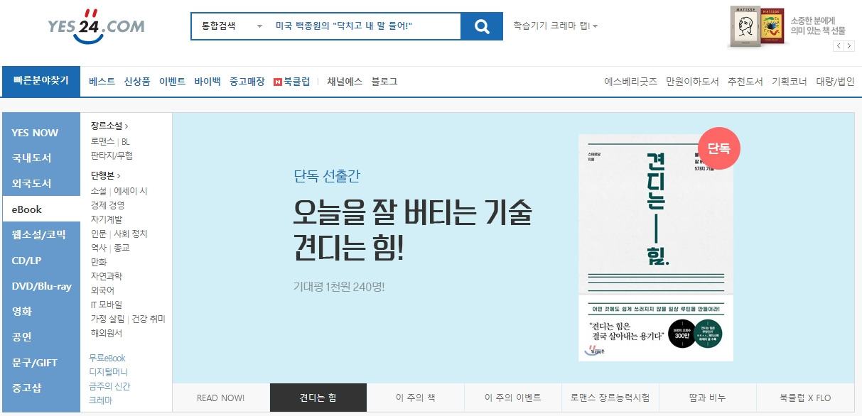 '견디는 힘'이 Yes24 오프라인 출간에 이어 eBook 단독 선 출간을 하였습니다.