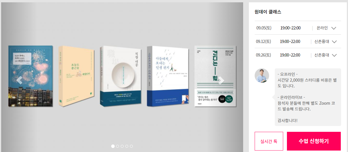 기존 '탈잉' 오프라인 신청 메뉴에서, 온라인으로 운영하는 날짜를 선택하시면 됩니다.