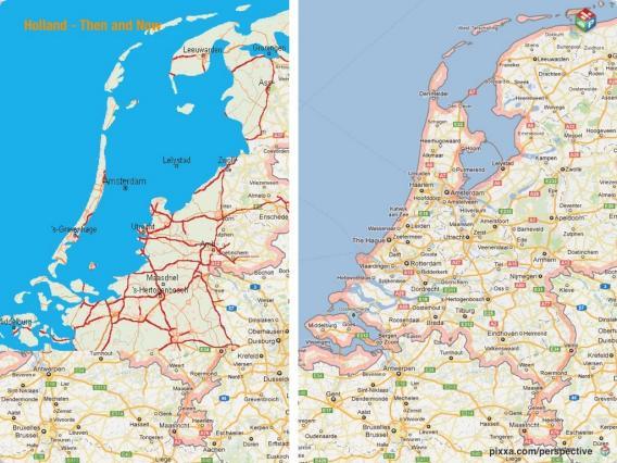 정리하면 네덜란드 국토의 약 25%가 해수면보다 낮은 곳에 그리고 인구의 21%가 그 땅에 살고 있으며, 최저 고도는 해발 -6.76m다.