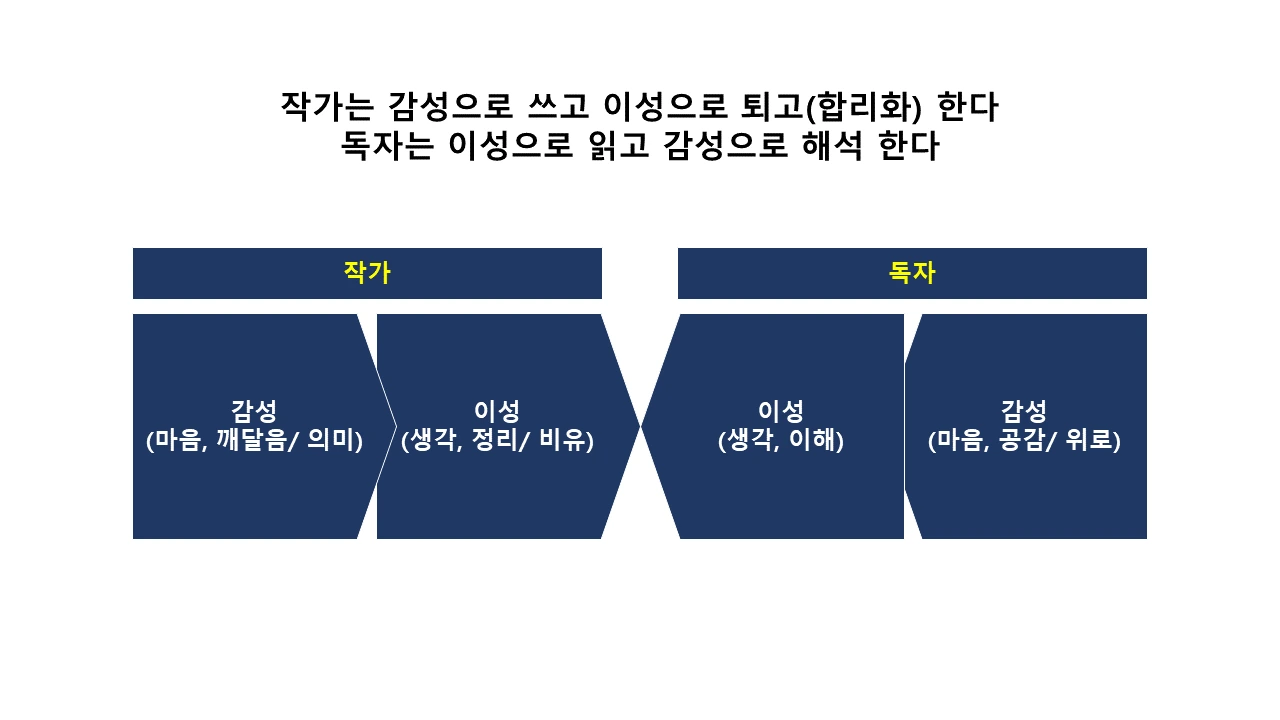 왜냐하면 독자는 '이성'으로 읽고, '감성'으로 해석하기 때문이다.