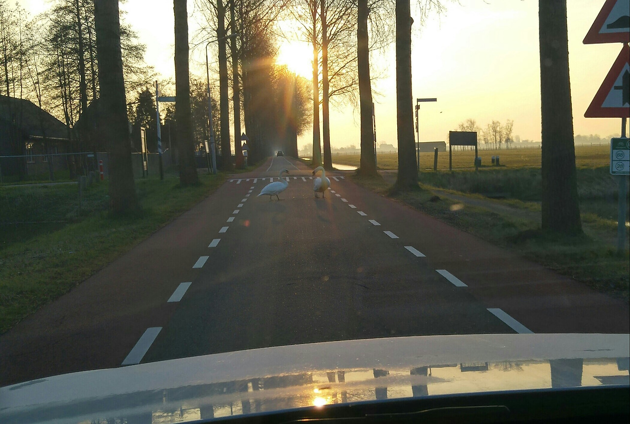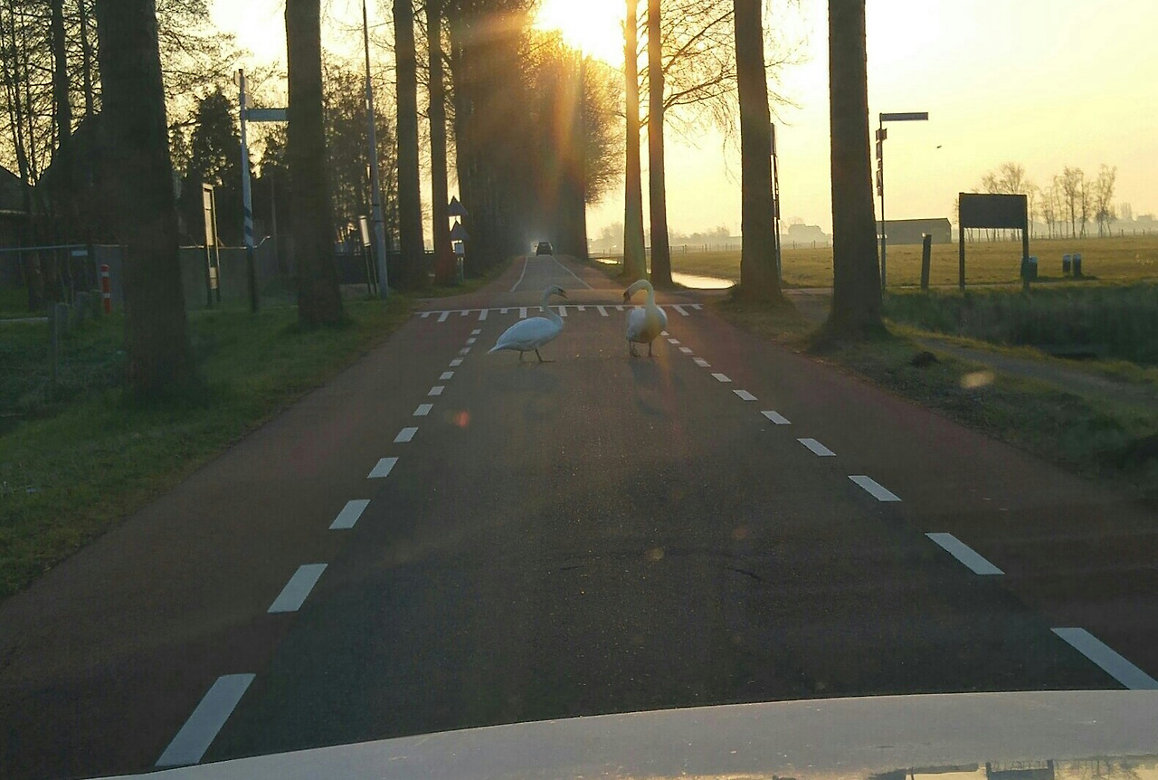 가끔은 오리나 작은 새들이 길을 막아섰다 달아나곤 하는데, 오늘은 특별히 백조 두 마리가 나를 맞이한 것이다.